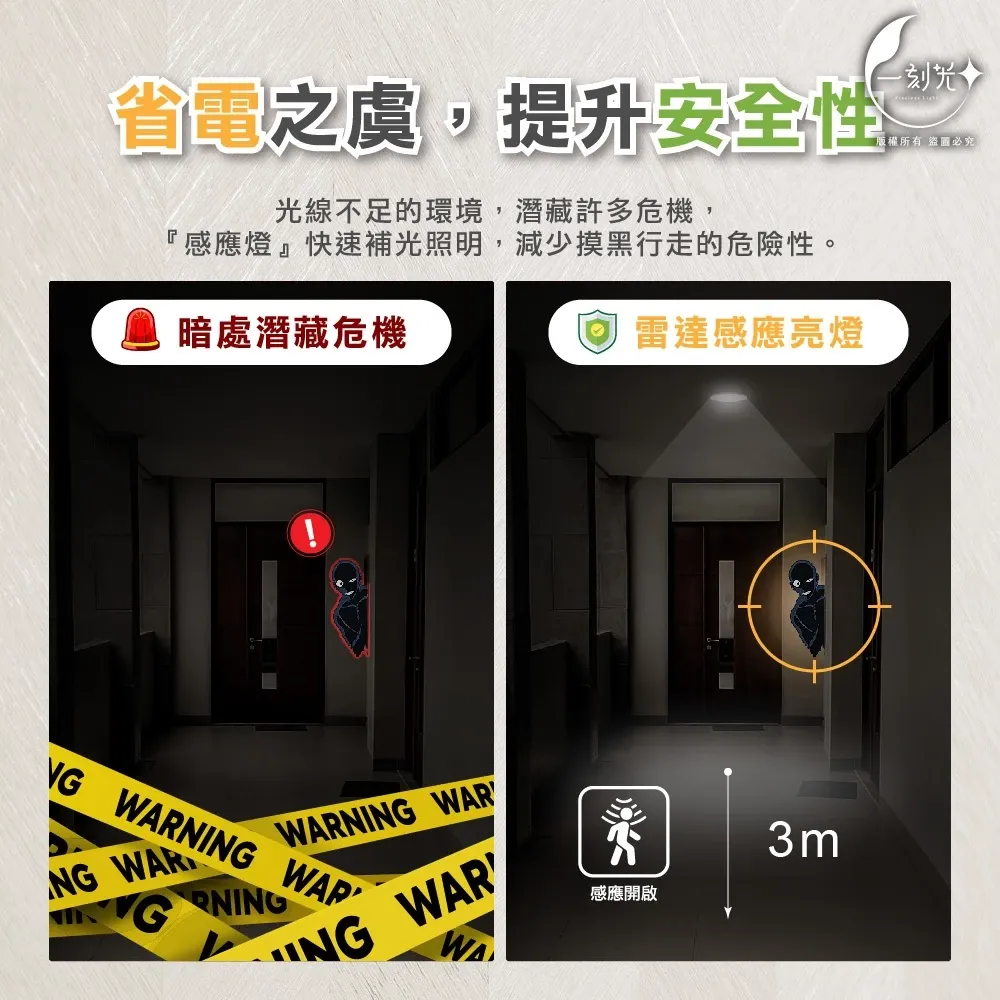 💡適用場所:室內停車場、玄關、門口、騎樓下、走廊、走道、樓梯間等光線不足、需要及時短暫、省電照明的空間。