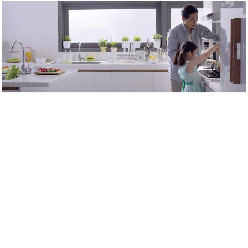 • .珍珠白外罩設計,典雅大方,廚房裝潢不突兀