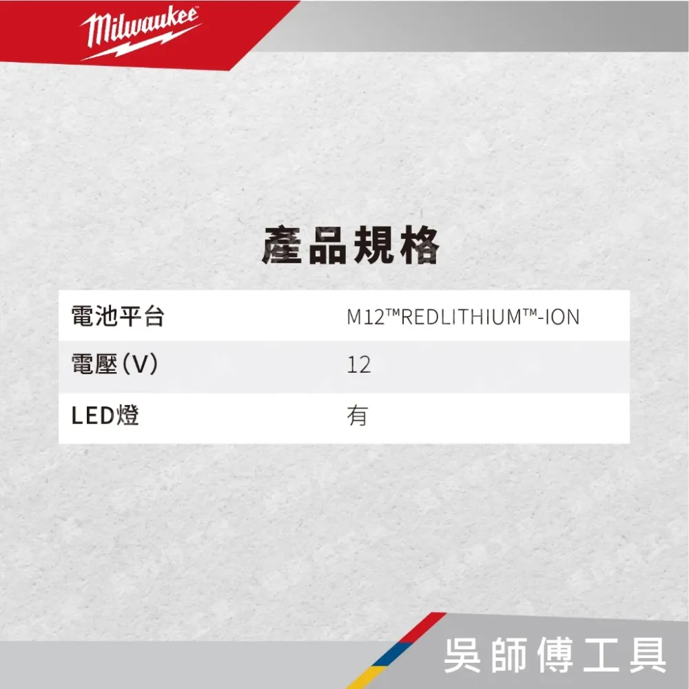 電池平台:M12™ REDLITHIUM™-ION 紅鋰電池