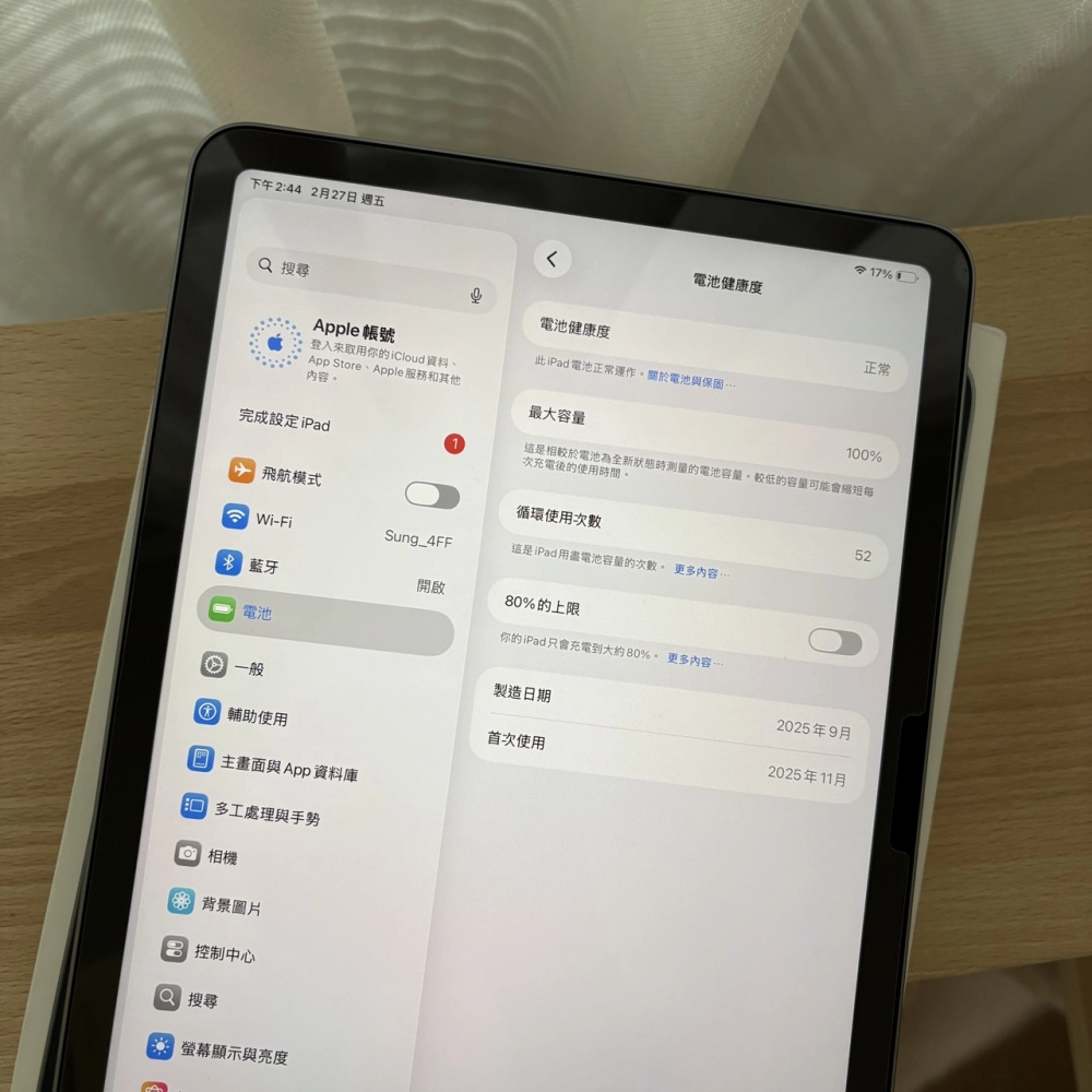 • 台中 保固2026/11 Apple iPad Air M3 11吋 Air7 WiFi 128G 灰色 外觀很新!