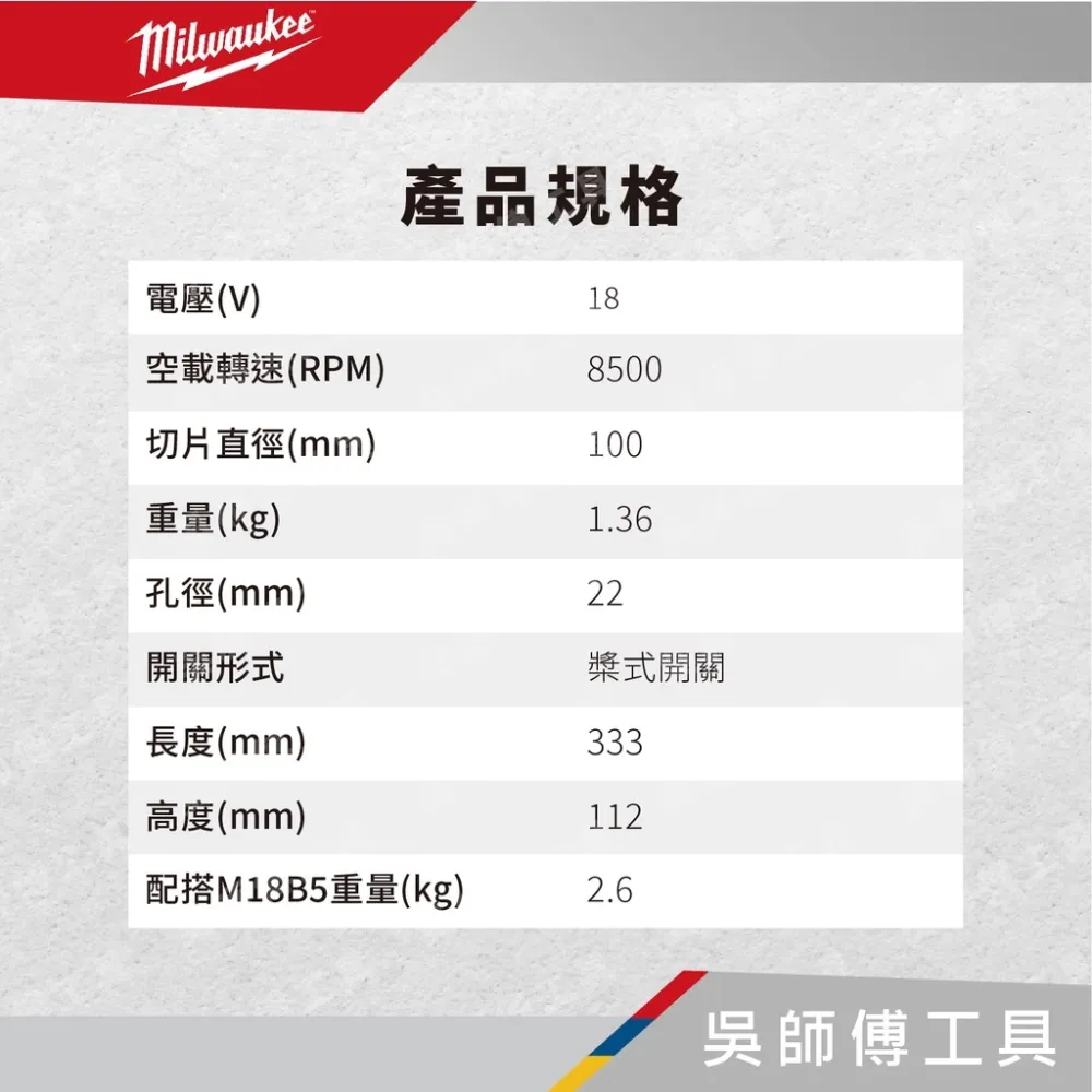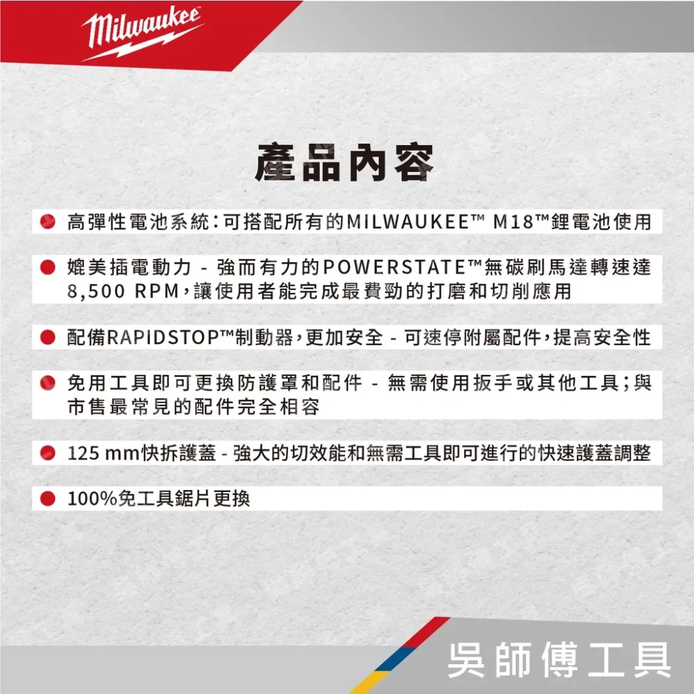 ●高彈性電池系統:可搭配所有的MILWAUKEE™ M18™鋰電池使用