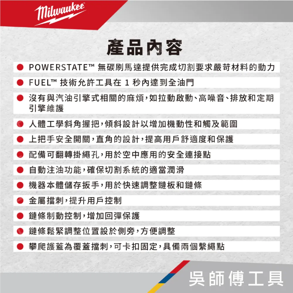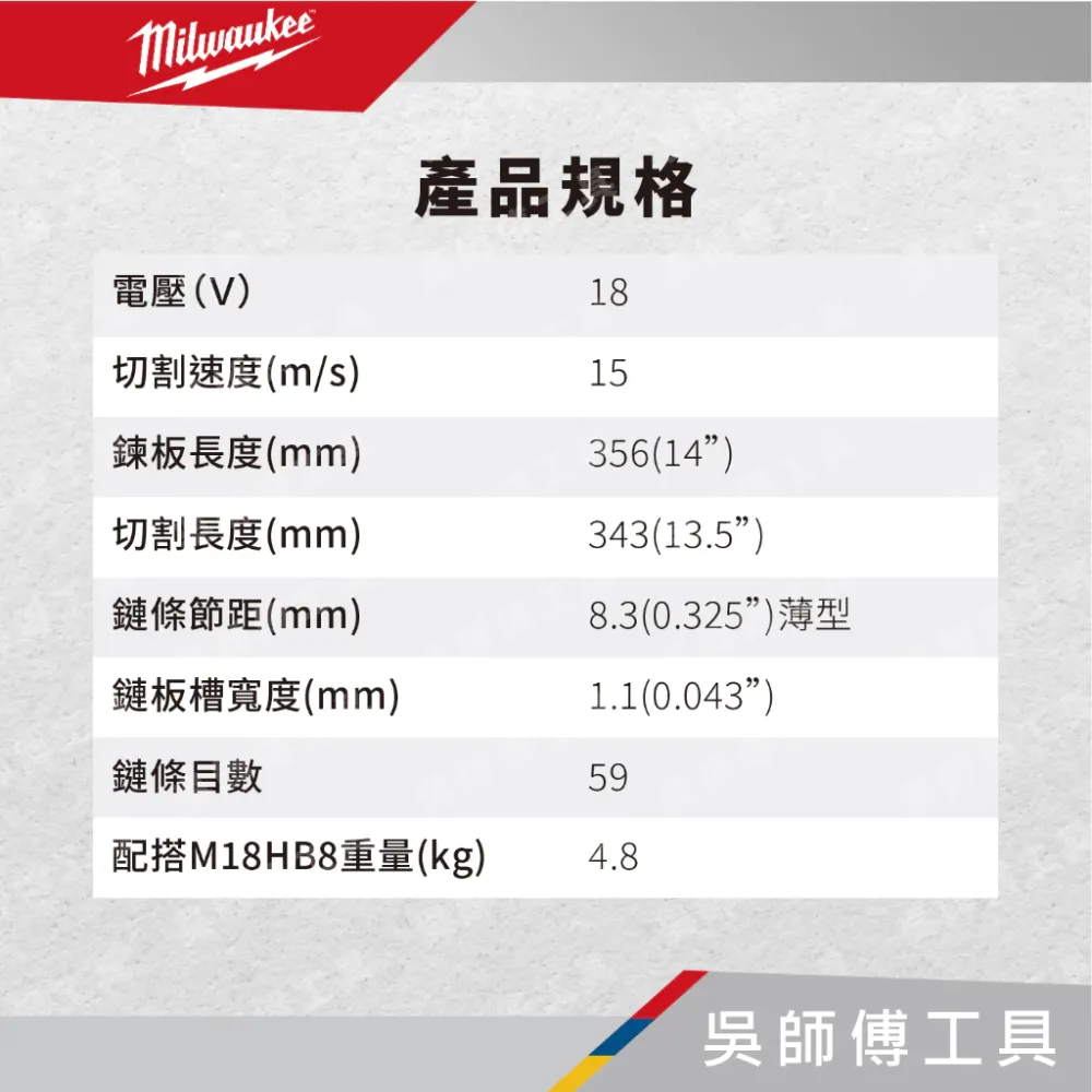 【M18 FTHCHS35】18V鋰電無碳刷 14"鏈鋸機(主機)