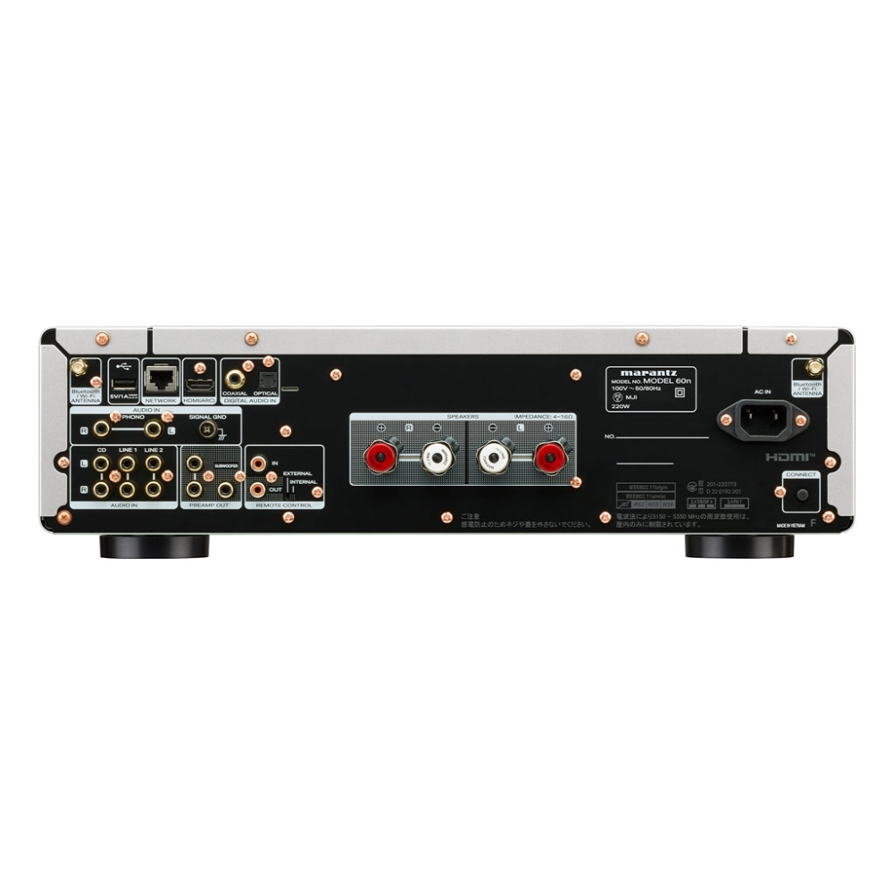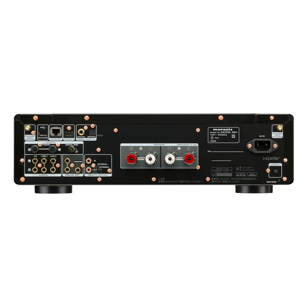 輸入/輸出端子:音訊輸入端子:非平衡 x 3、PHONO (MM) x 1、HDMI (ARC) x 1、同軸數位 x 1、光纖數位 x 1、USB-A x 1