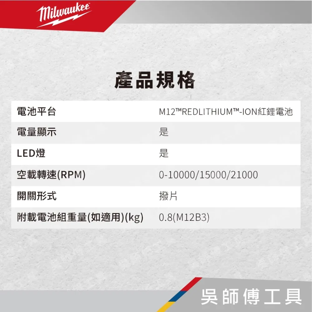【M12 FDGS】12V 6MM8MM 無刷直柄刻磨機(單機)