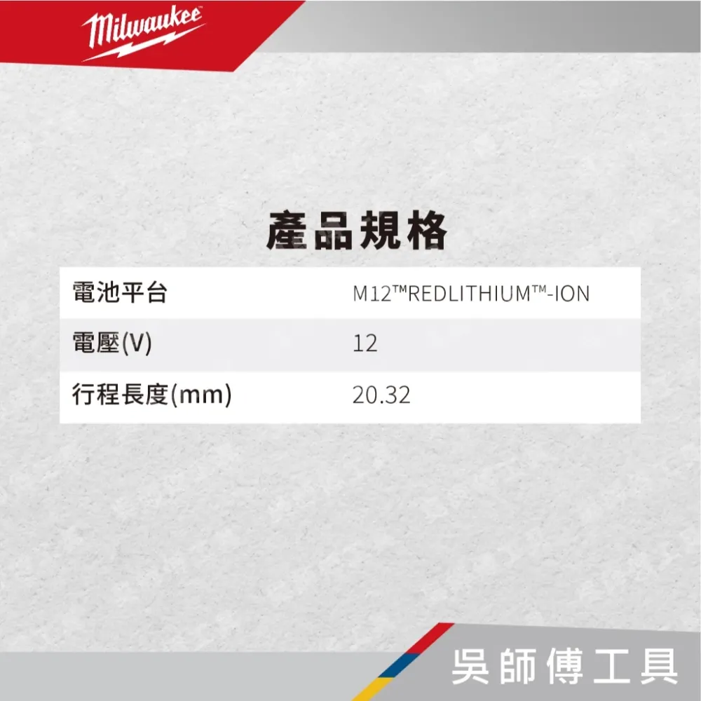 電池平台:M12™ REDLITHIUM™-ION 紅鋰電池