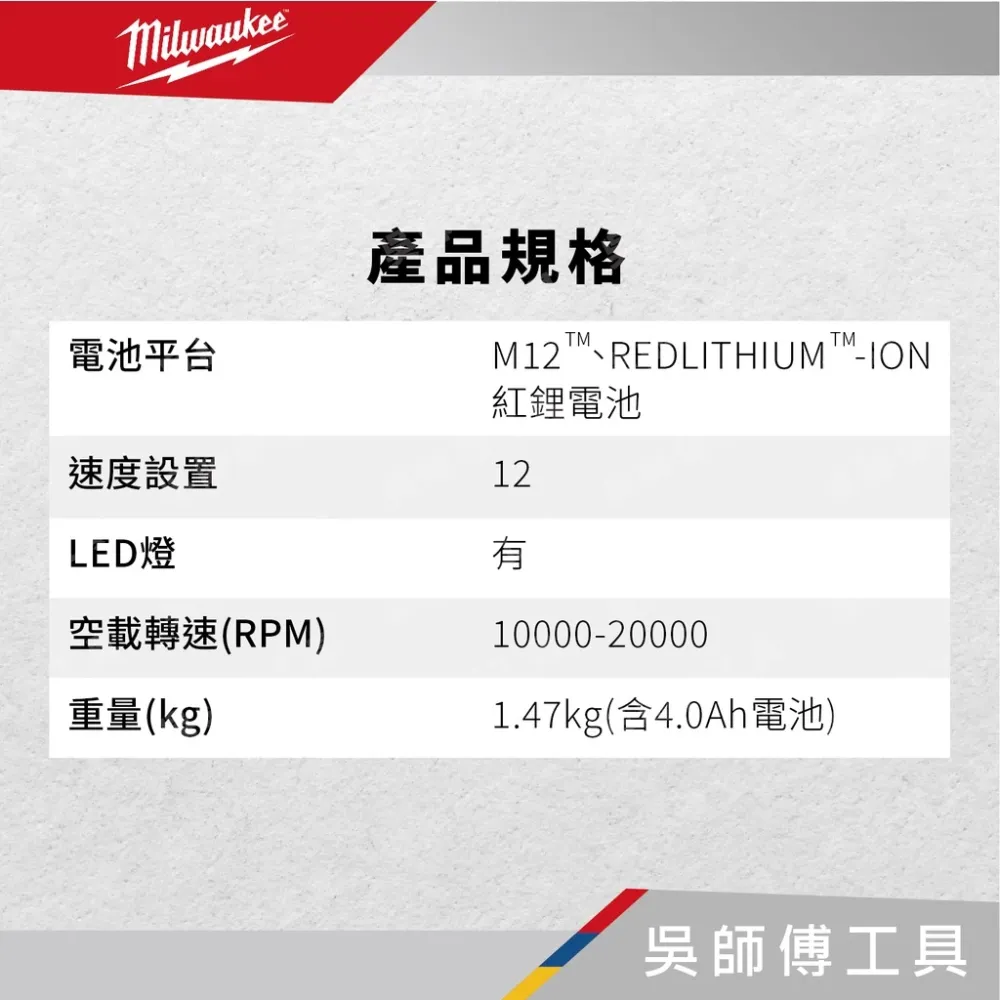 電池平台:M12™ REDLITHIUM™-ION 紅鋰電池