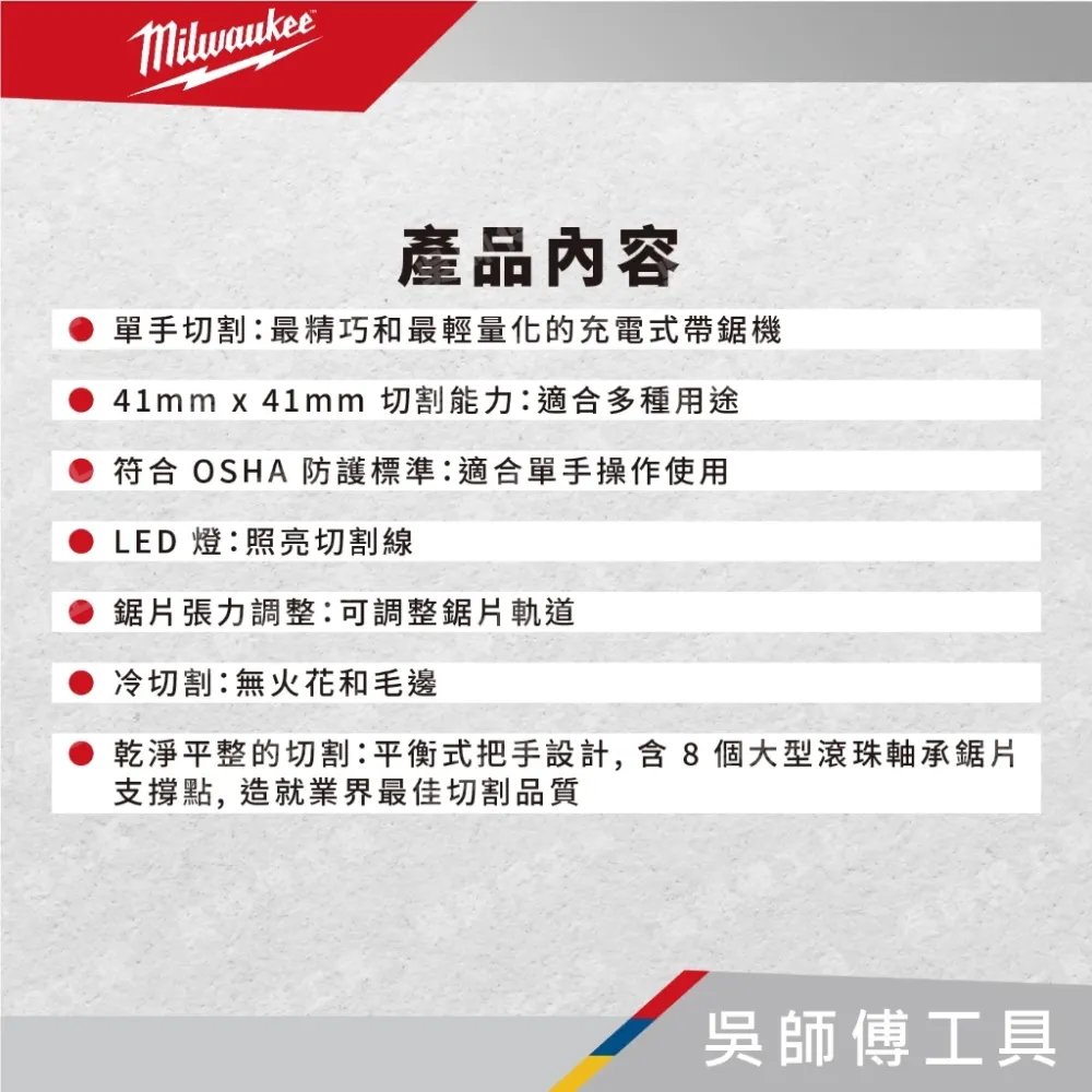 ●乾淨平整的切割:平衡式把手設計, 含 8 個大型滾珠軸承鋸片支撐點, 造就業界最佳切割品質