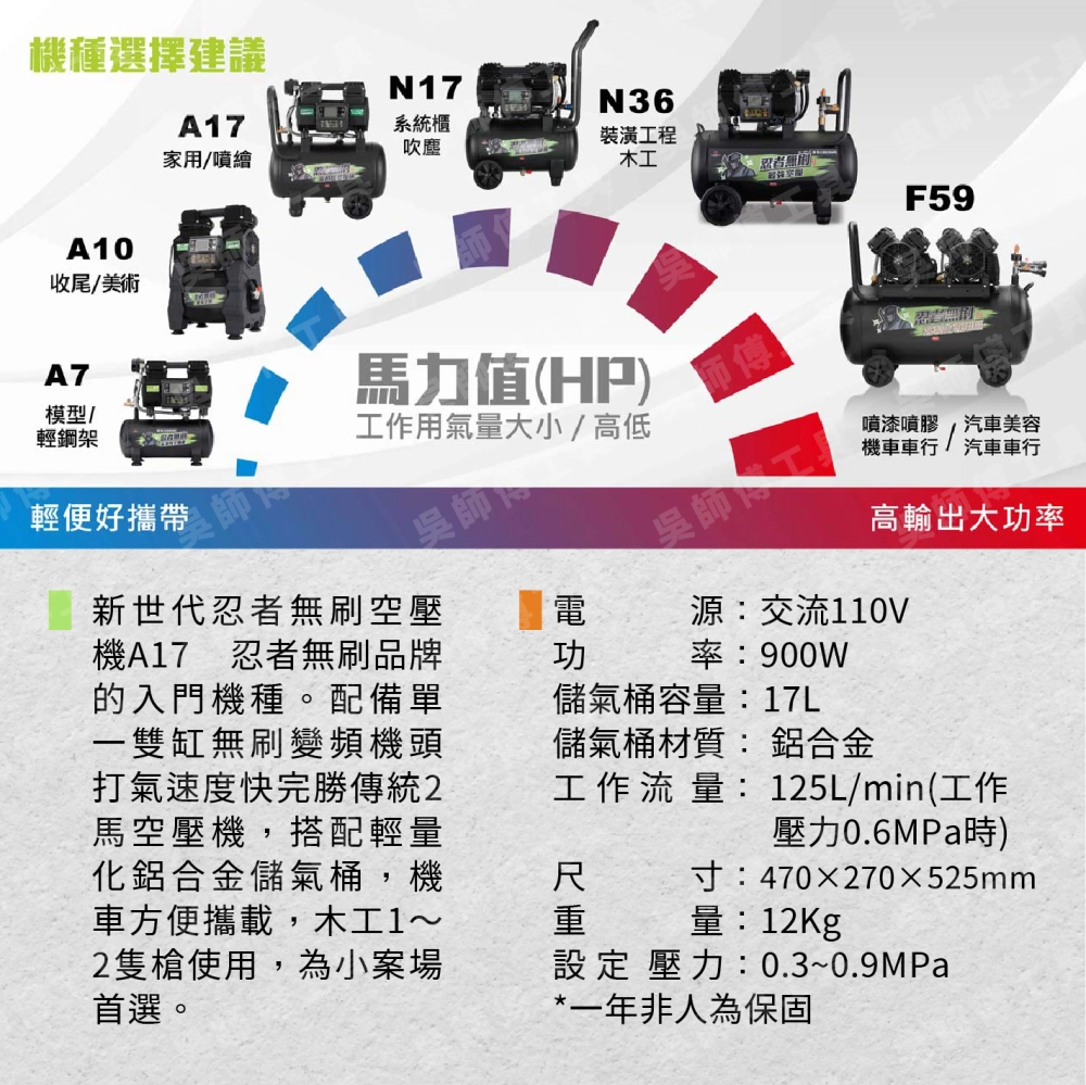商品忍者無刷 N17 N系列空壓機(獨家雙散熱系統)
