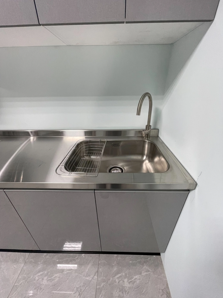 219+60公分 電器櫃下櫃304不鏽鋼桶身,上櫃木芯板70高,美耐板門 下:上崁鋁手把 上;無收把,304不鏽鋼檯面,60公分水槽,304不鏽鋼鵝頸龍頭,櫻花2522瓦斯爐黑玻,喜特麗1710油煙機。