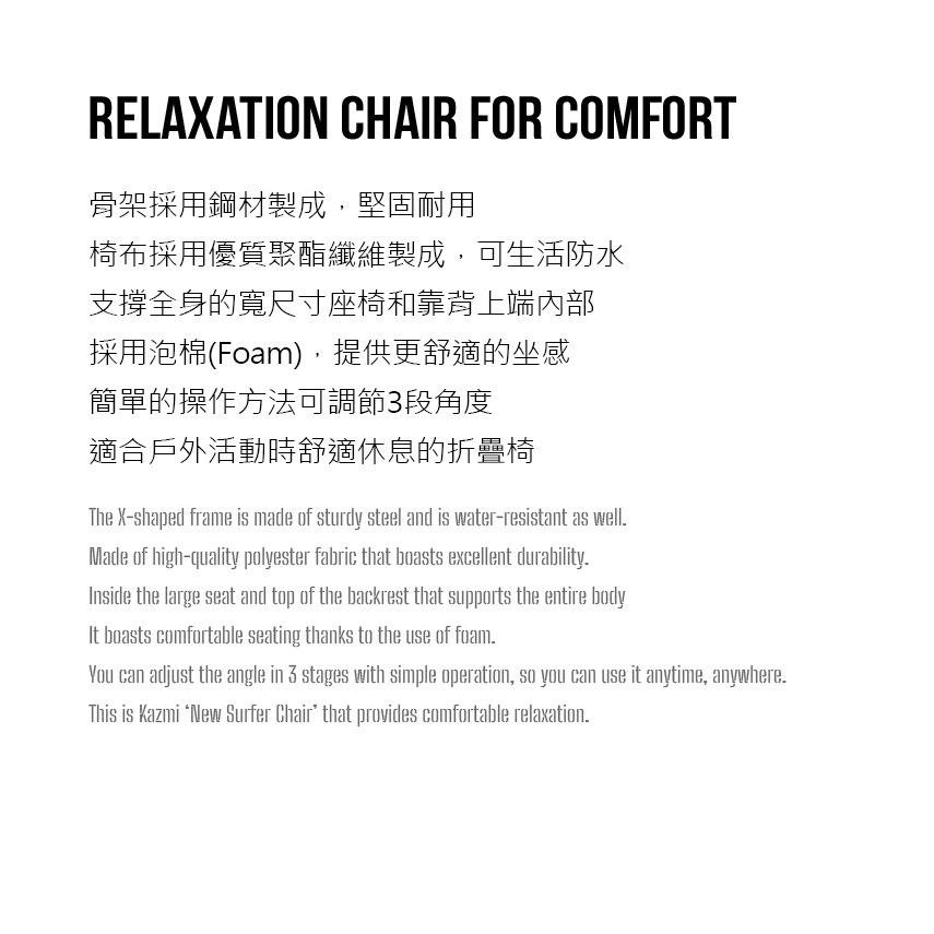 🔥採用支撐舒適身體的骨架結構設計,可感受到舒適度、安定感休閒摺疊椅