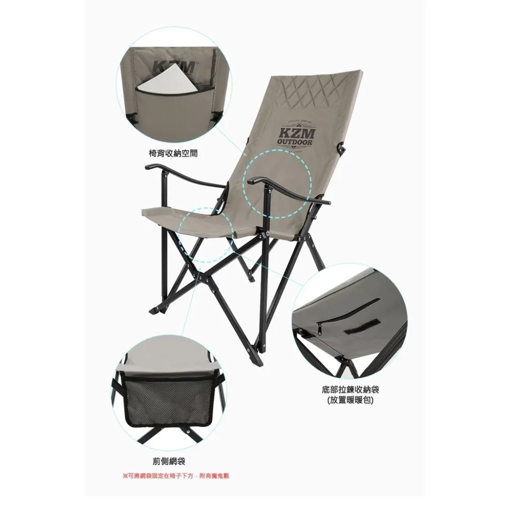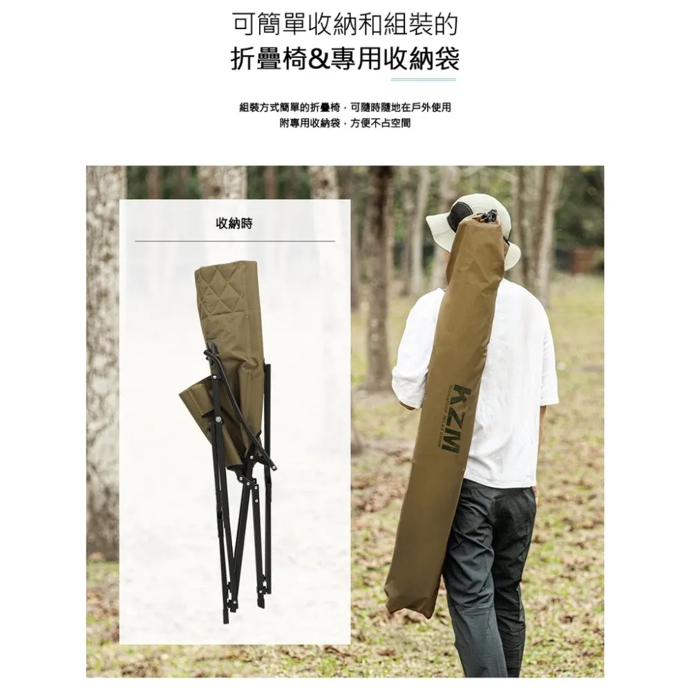【綠色工場】KAZMI KZM 極簡時尚豪華休閒折疊椅灰、卡其 休閒椅 導演椅 露營椅 收納椅