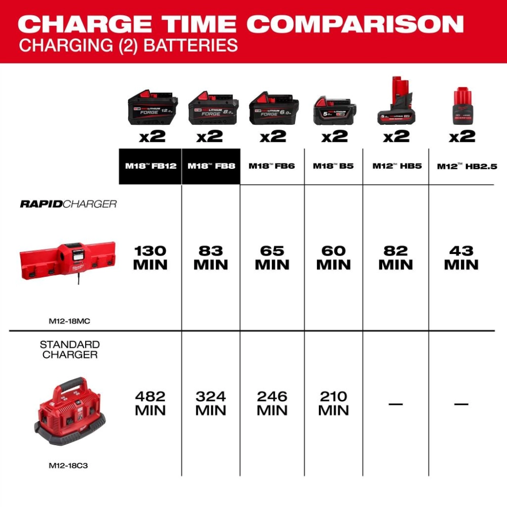 ●適用於所有 M12™ 和 M18™ 電池的快速充電速率