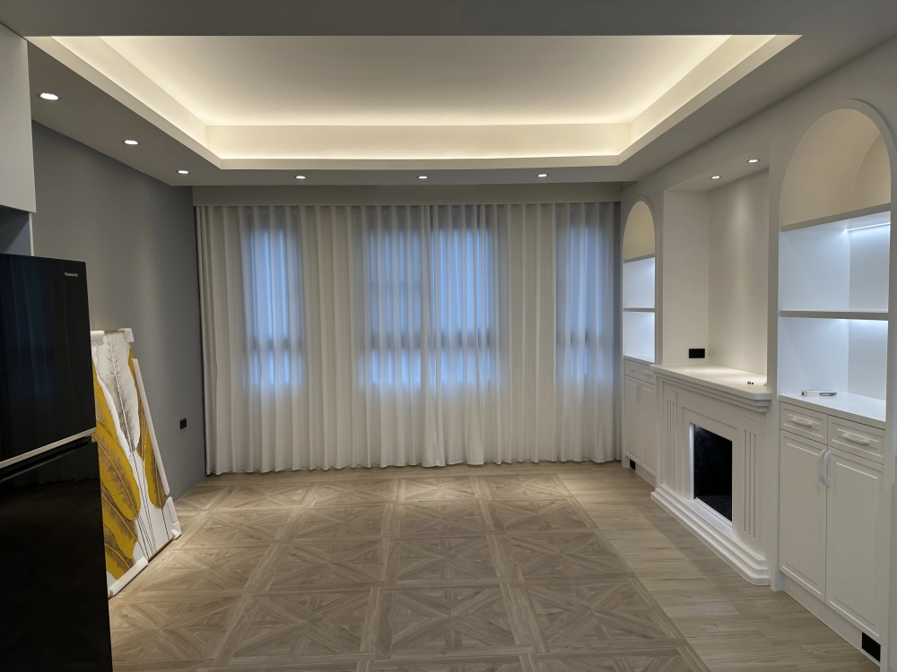 本案例展示我們如何在公共空間與臥室私領域中,駕馭繁複造型、多材質融合,以及精準燈光設計,實現高質感居家空間。