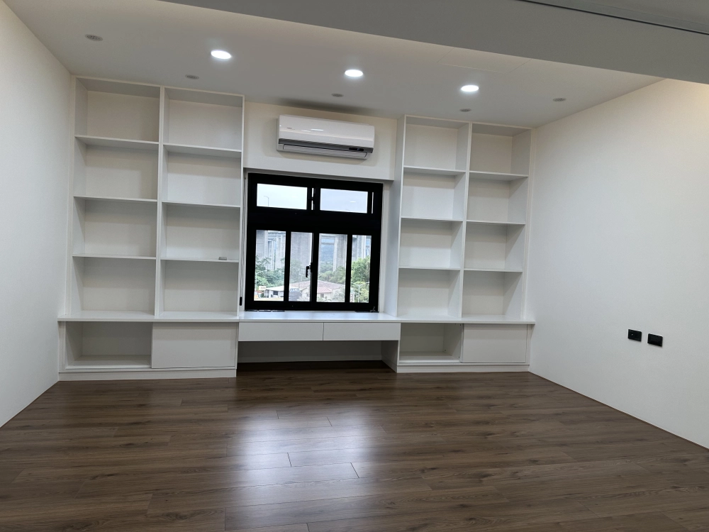 公共區域以大量白色木作和法式輕古典線條打造,呈現明亮、精緻氛圍。