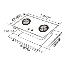 挖洞尺寸(WxD/R)㎜ (AS)670x350 ∕ R85(ALH)725x465 ∕ R92.5