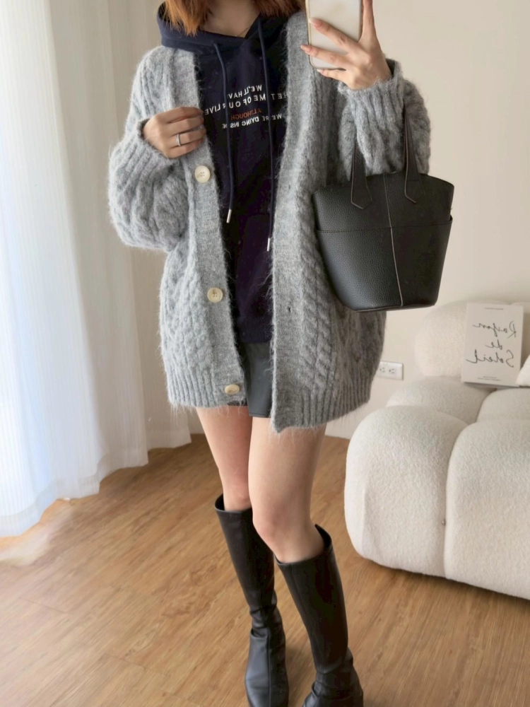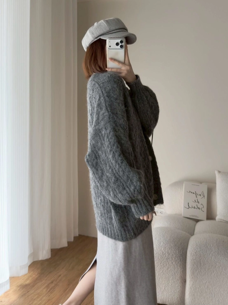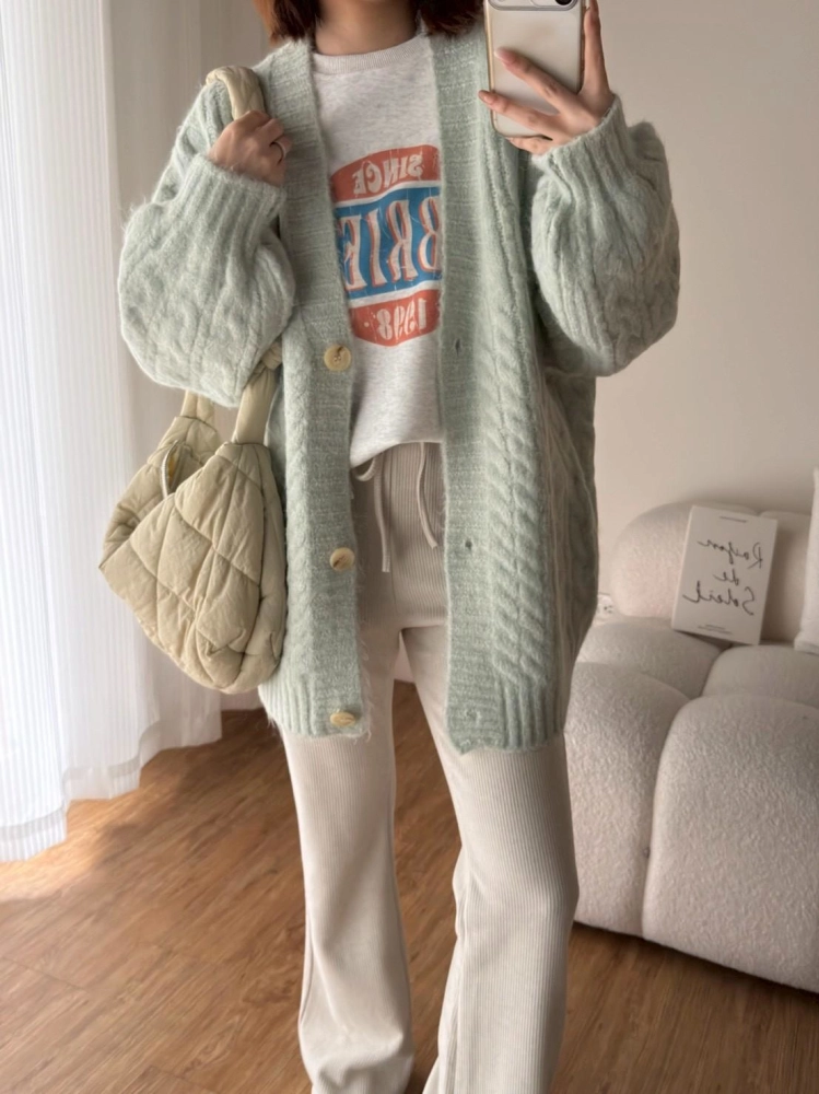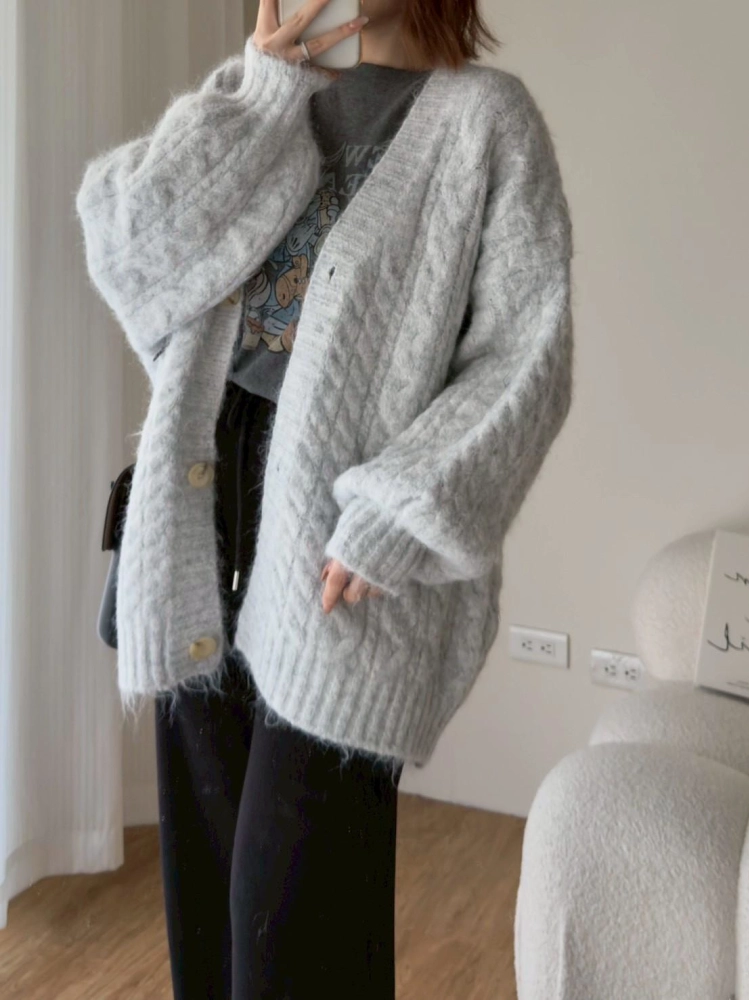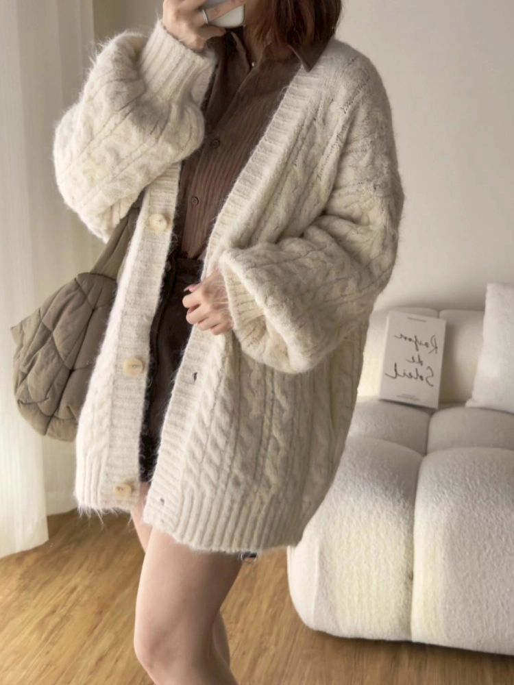 • 大版花苞袖麻花針織外套