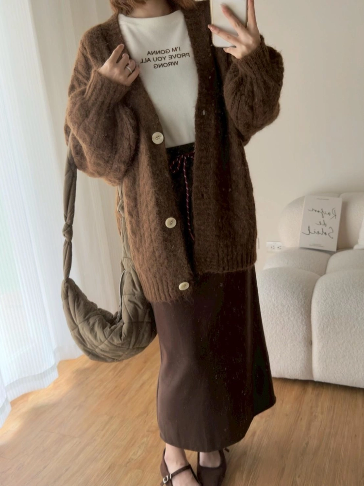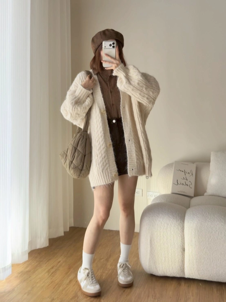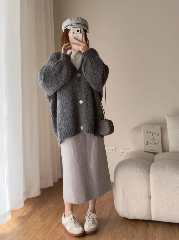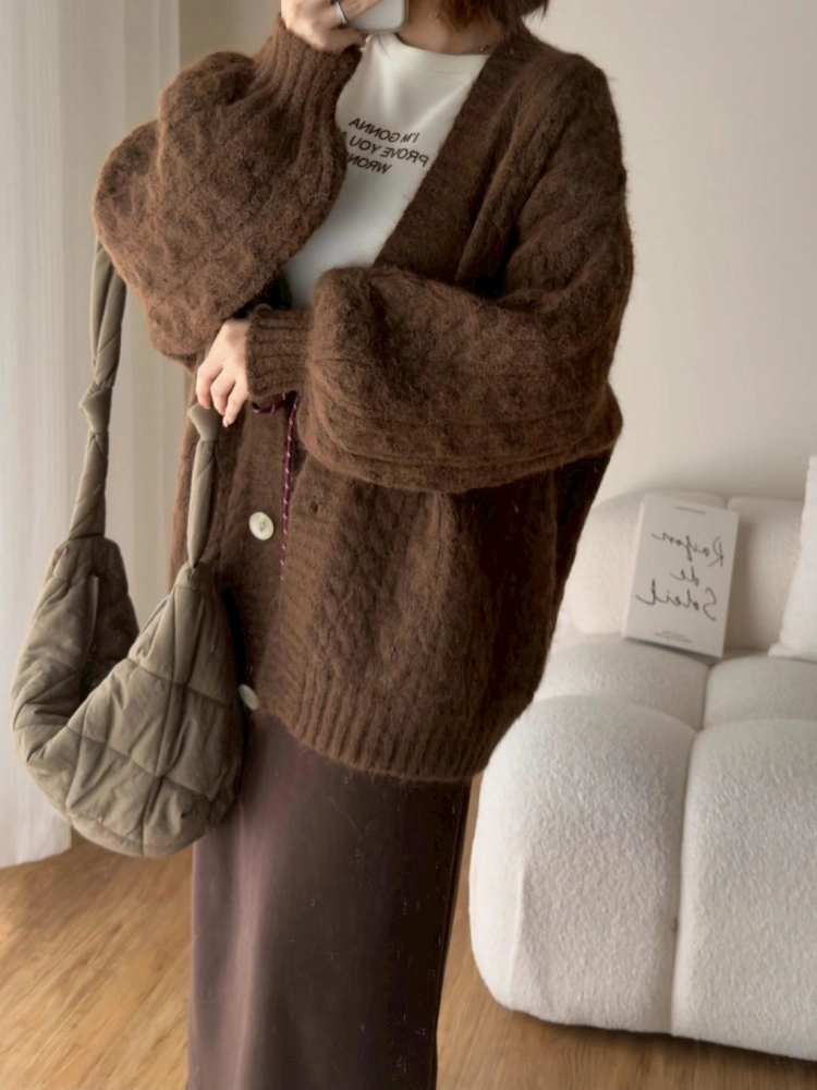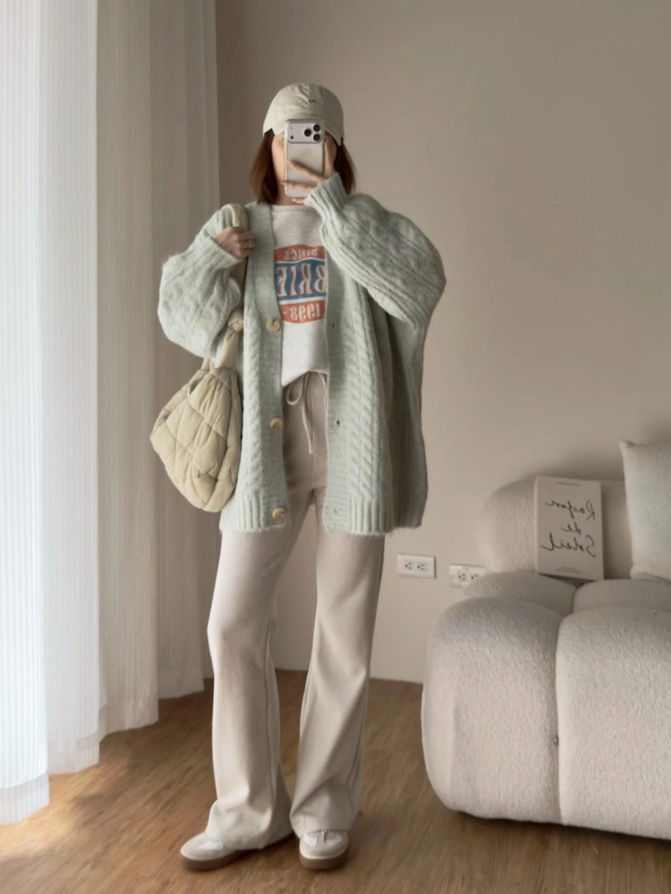 • 大版花苞袖麻花針織外套