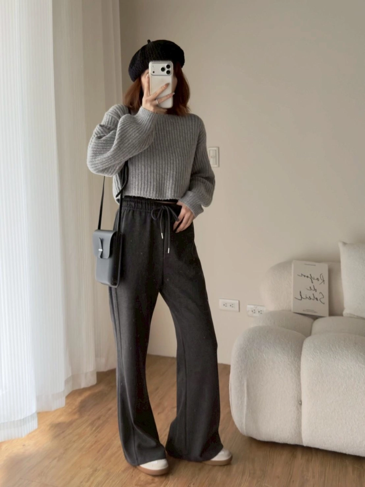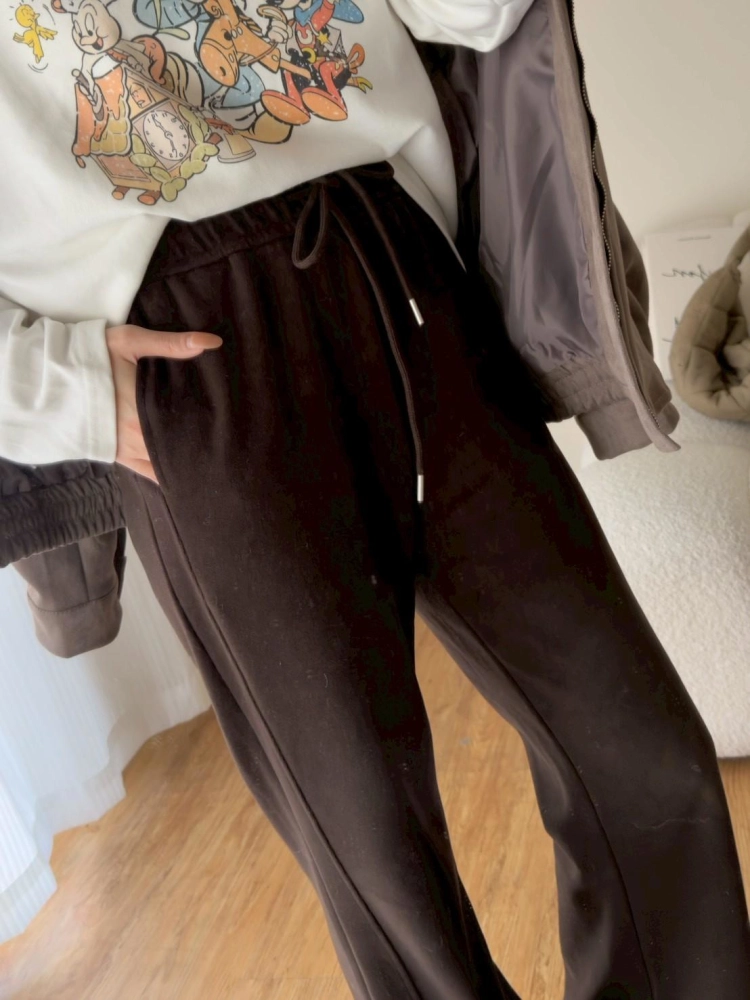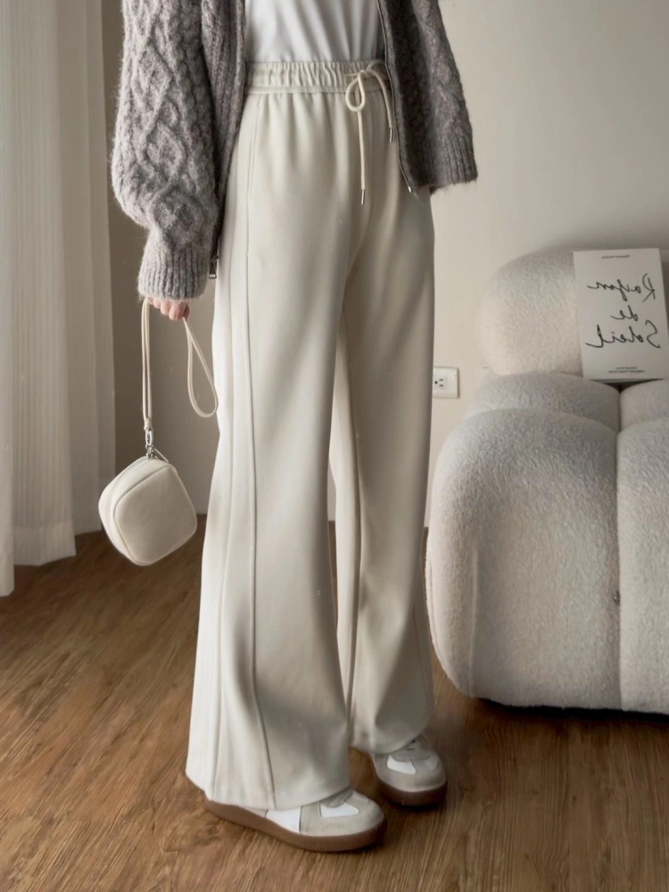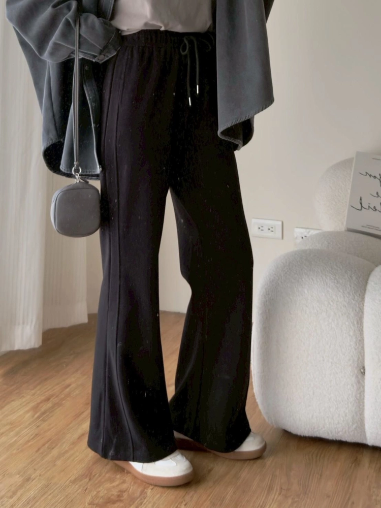 • 羊絨拼接微喇長褲