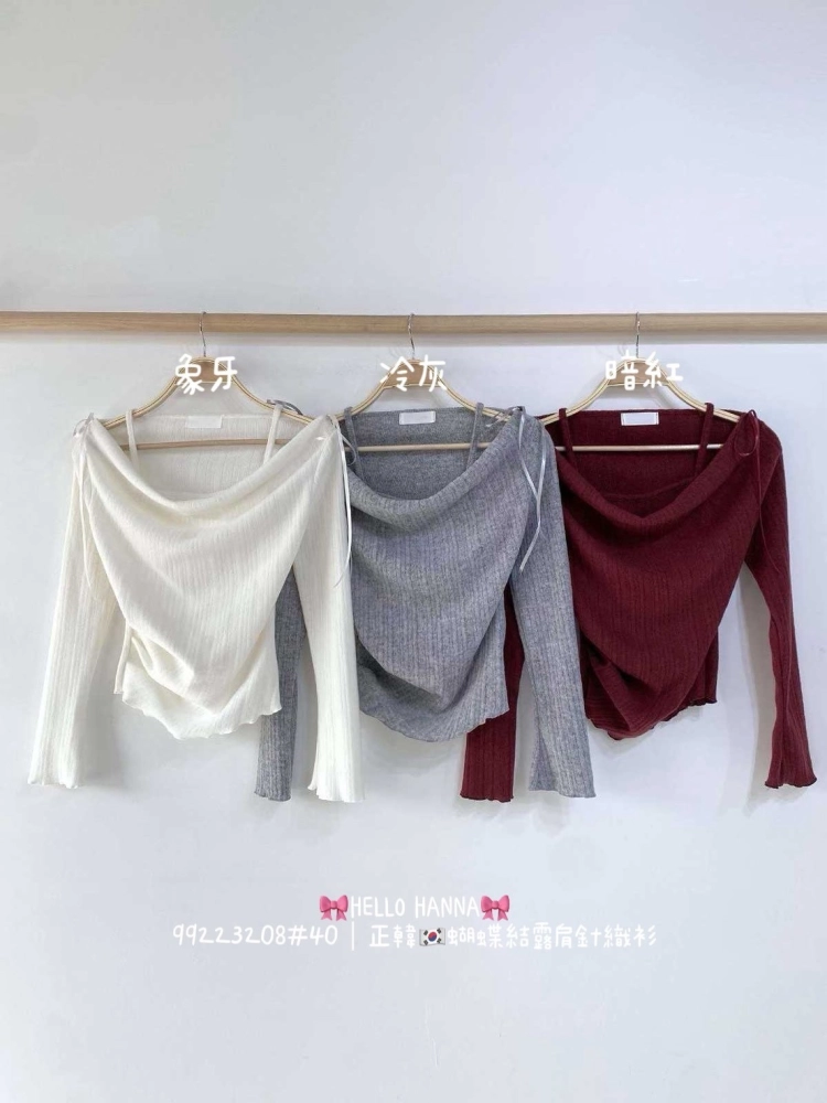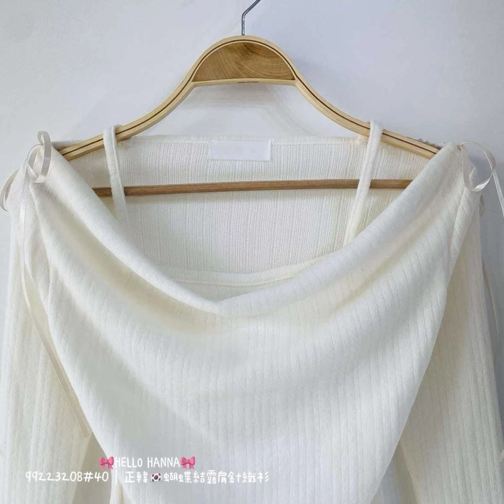 • 正韓蝴蝶結露肩針織衫