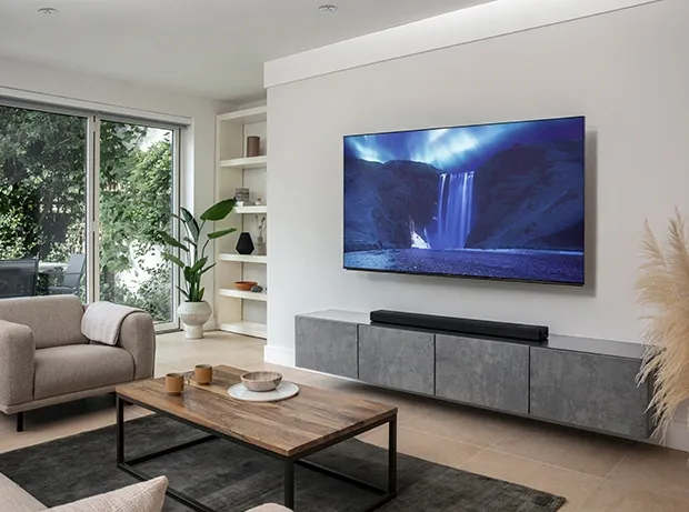 填滿您居家空間每一吋的寬廣聆聽範圍,讓您的親朋好友無論坐在何處都能享有相同的音效體驗。聆聽範圍不僅限於顯示器前方,也涵蓋更寬廣的空間。