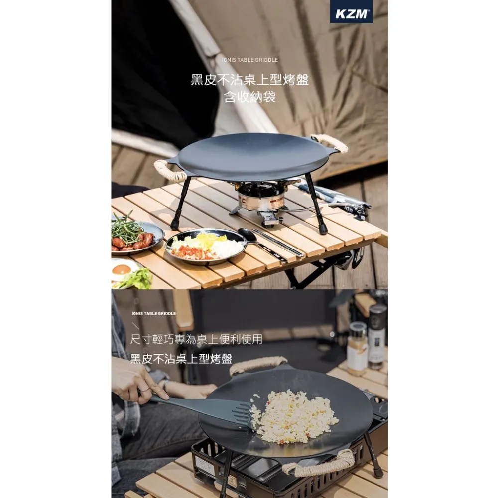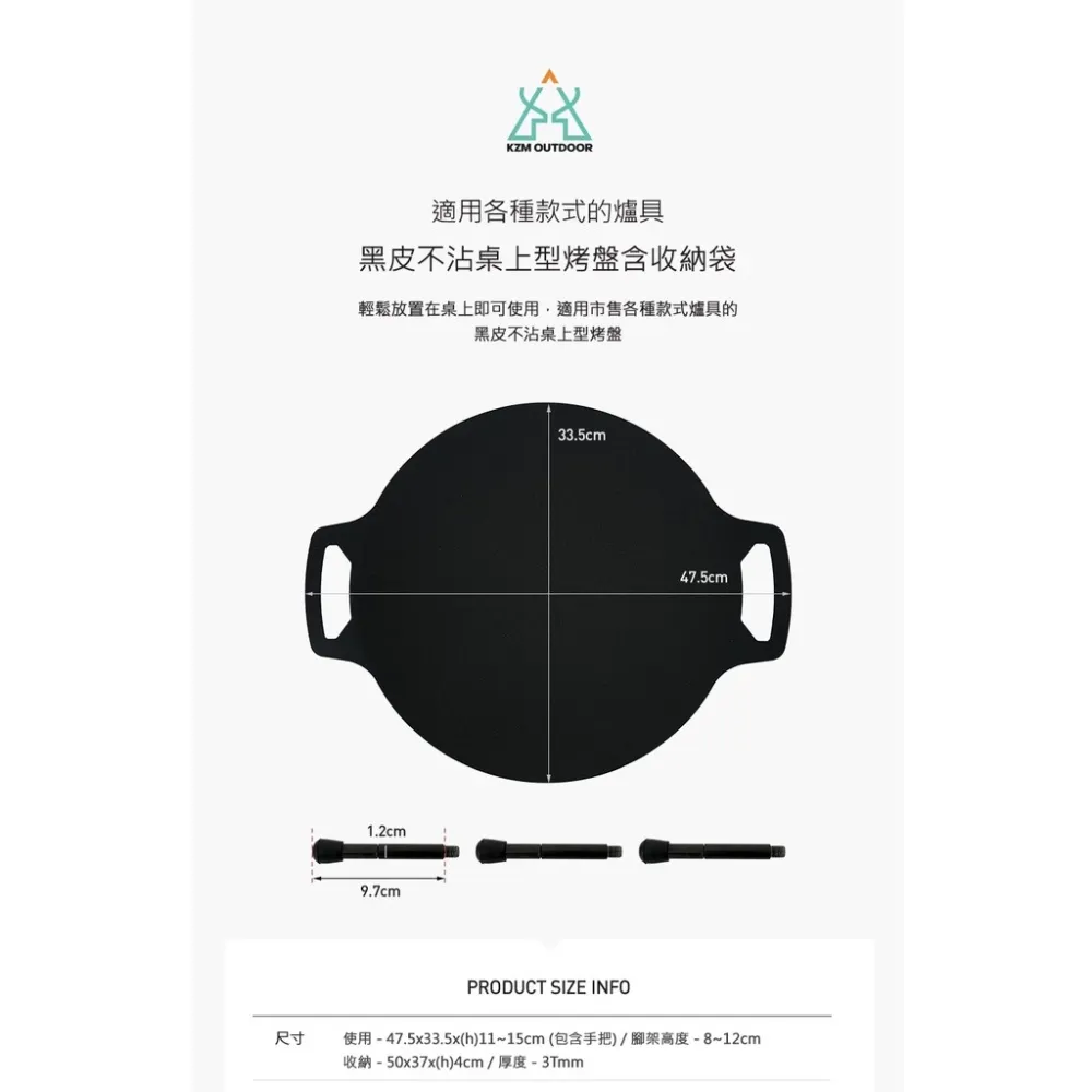【綠色工場】KAZMI 黑皮不沾桌上型烤盤 33cm 含收納袋 (K20T3G008) 鍛鐵盤 烤肉盤 燒烤盤 鑄鐵盤