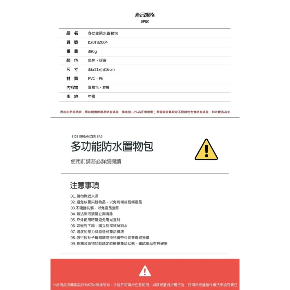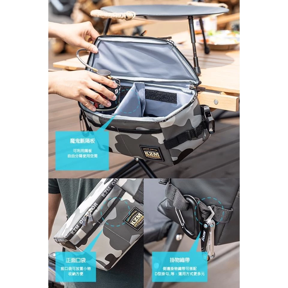 【綠色工場】 KAZMI KZM 多功能防水置物包(迷彩) 收納袋 置物袋 置物包 掛物袋 露營 野營 側掛袋 桌邊袋