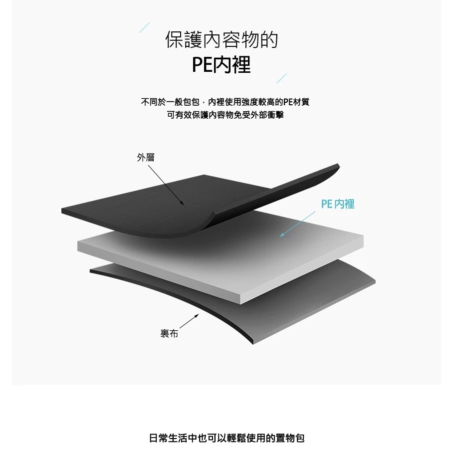 💯採用高強度PE內裏,可緩衝外部撞擊