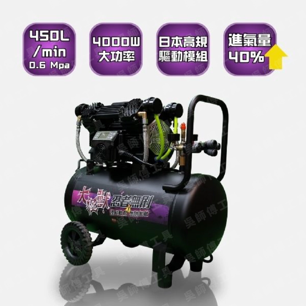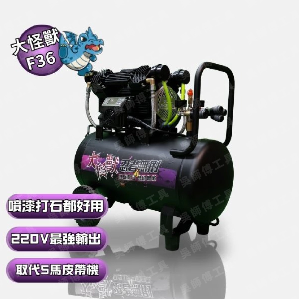 忍者無刷 大怪獸無刷空壓機 F36 適用於打石、木工5~7人,汽車美容、噴膠、噴塗作業等大氣量。