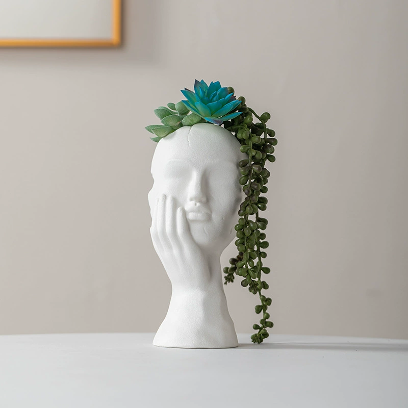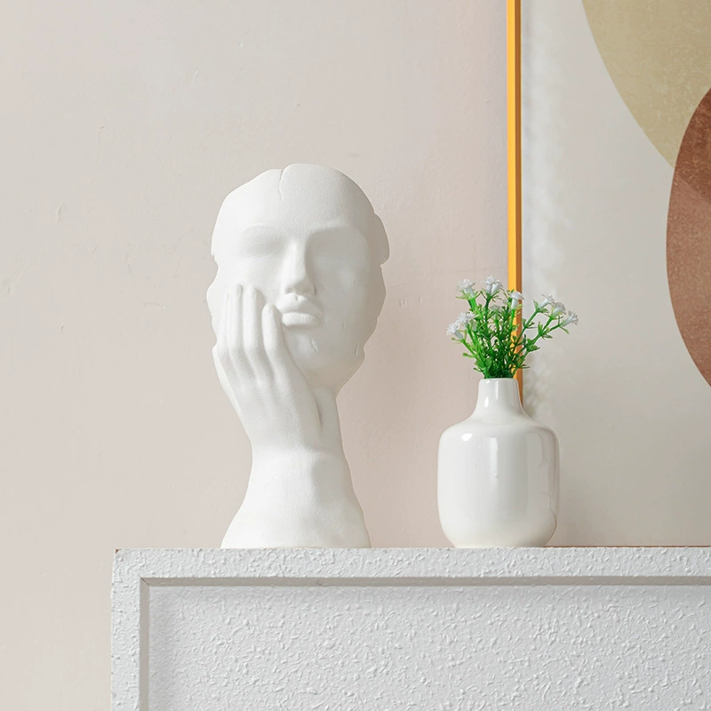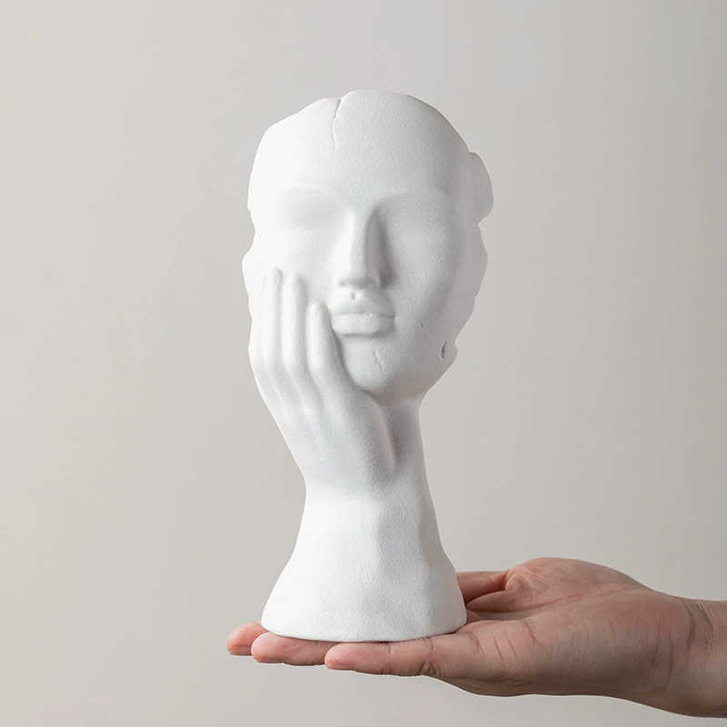 商品現代簡約黑白幾何裝飾擺件北歐樣板房樹脂抽象人物雕塑異形插花器