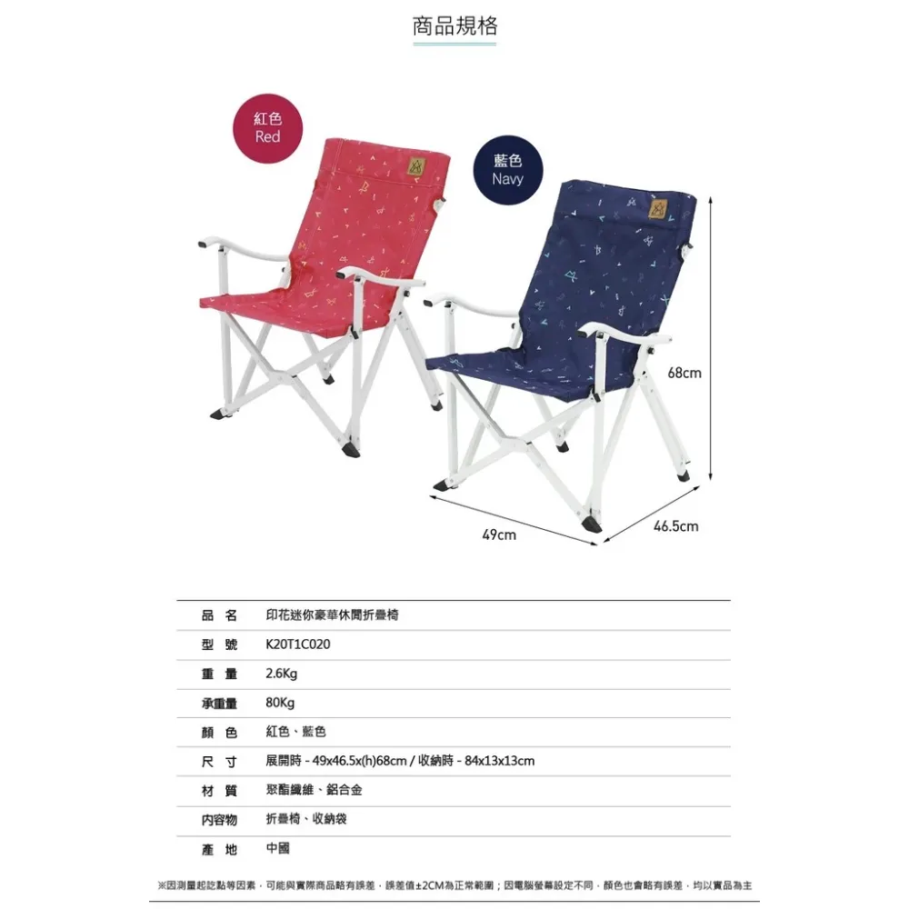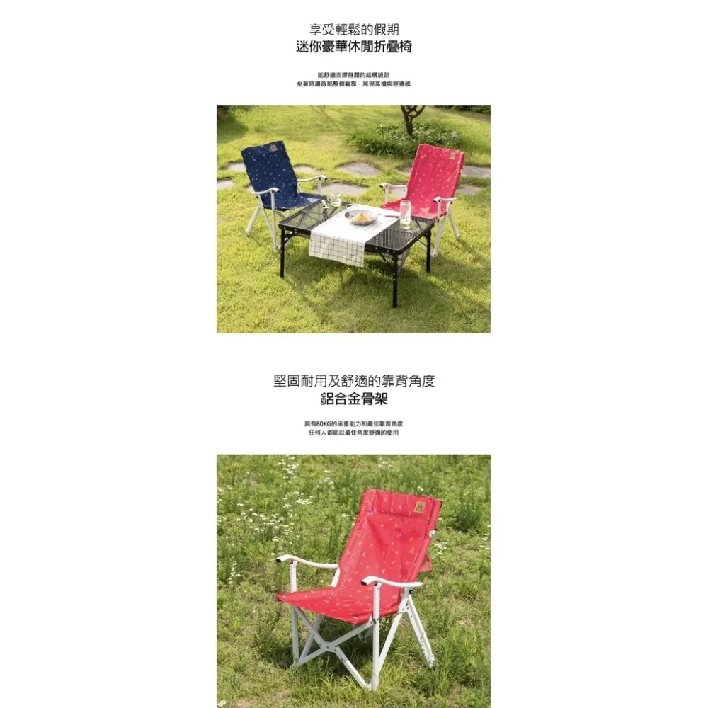【綠色工場】KAZMI KZM 印花迷你豪華休閒折疊椅(紅色) 休閒椅 導演椅 露營椅 收納椅