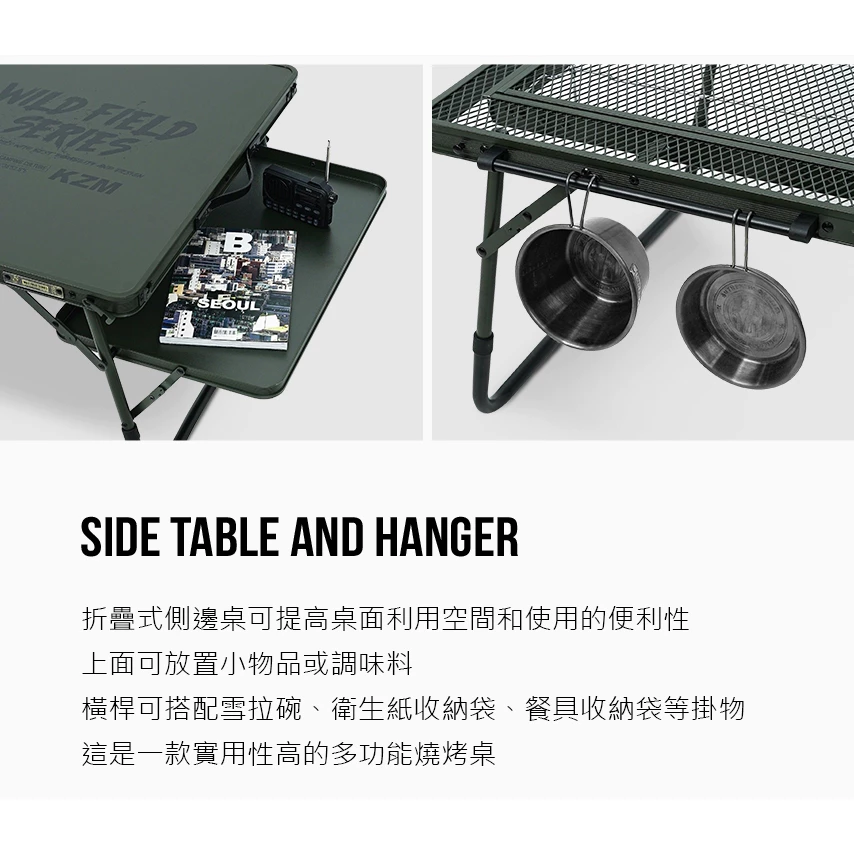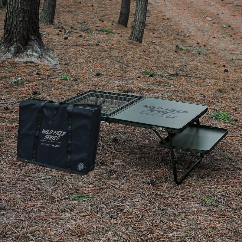 KZM IMS 工業風多功能燒烤桌【綠色工場】餐廚桌 露營桌 摺疊桌 收納桌 鋁合金桌 可拼節 附收納袋 下沉式桌板