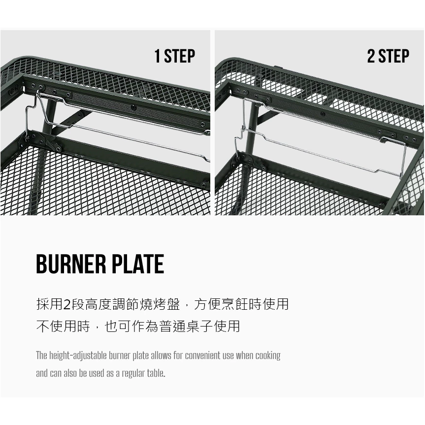 🔹採用2段高度調節燒烤盤,方便烹飪時使用;不使用時,也可作為普通桌子使用