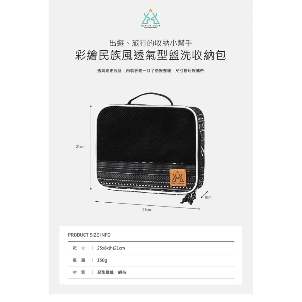 【綠色工場】KAZMI KZM 彩繪民族風透氣型盥洗收納包 沐浴用品 洗澡收納 收納袋 便攜袋 露營用品 沐浴收納袋