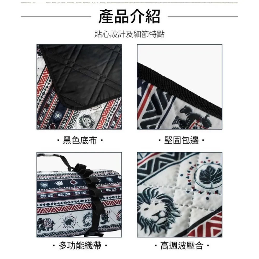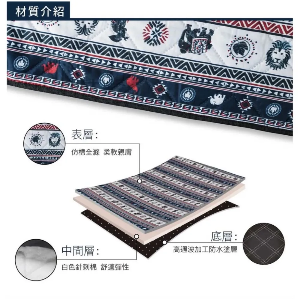 規格:表布-聚脂纖維∣中層-針刺棉∣底層-300D牛津布PU塗層