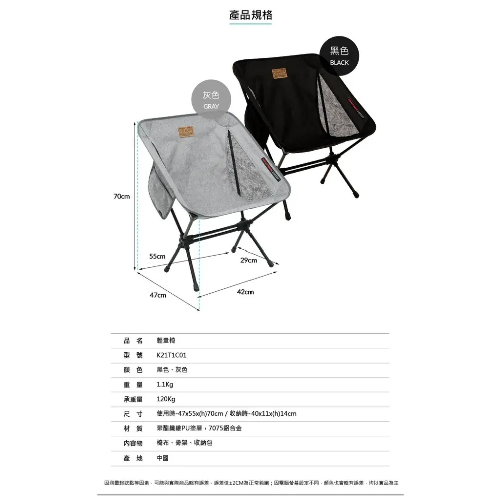 【綠色工場】KAZMI KZM 輕量椅(灰色) 休閒椅 摺疊椅 露營椅 收納椅 登山椅 (K21T1C01)