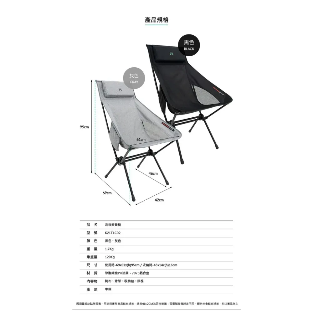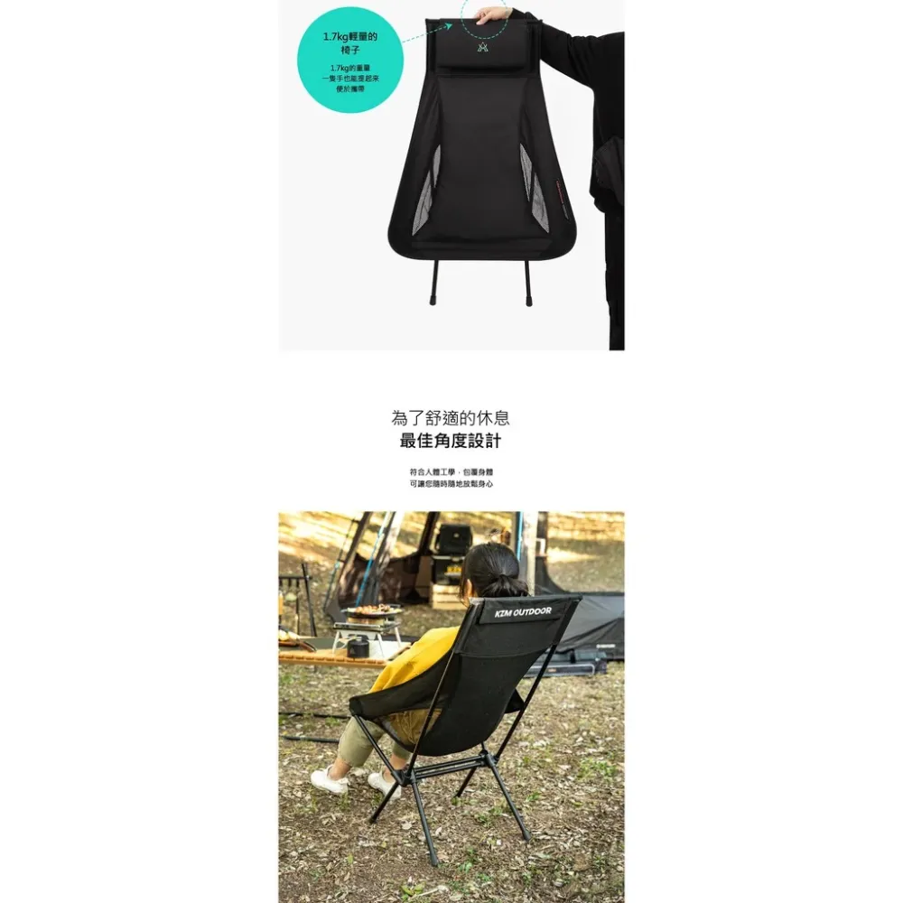 【綠色工場】KAZMI KZM 高背輕量椅(黑色) 休閒椅 摺疊椅 露營椅 收納小 露營 戶外 登山