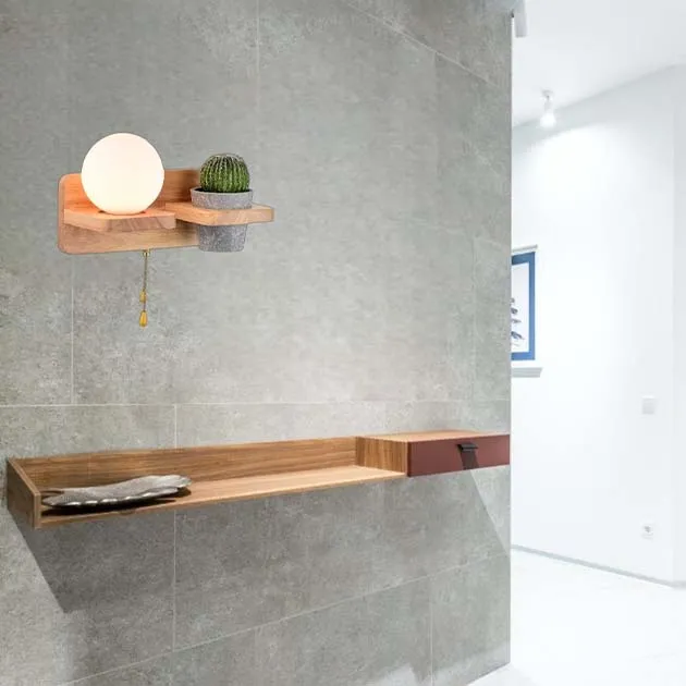 原木 玻璃 不含飾品 綠植及盤 附拉線開關