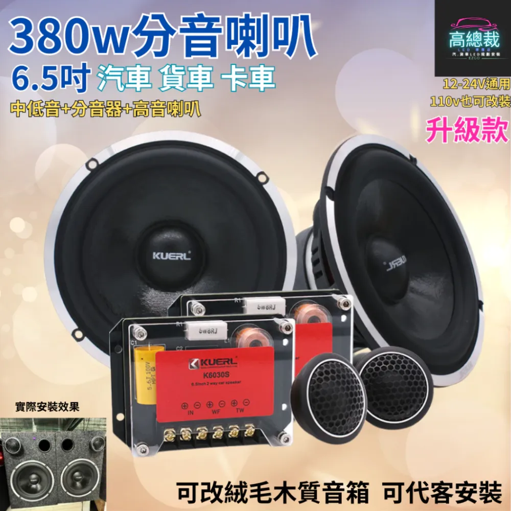 • 380w分音喇叭升級款 6.5吋 中低音 高音 車音響改裝 大功率高中重低音喇叭 改裝揚聲器【高總裁LED 】台灣現貨