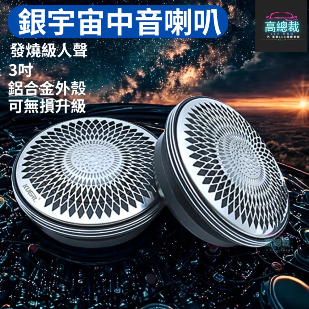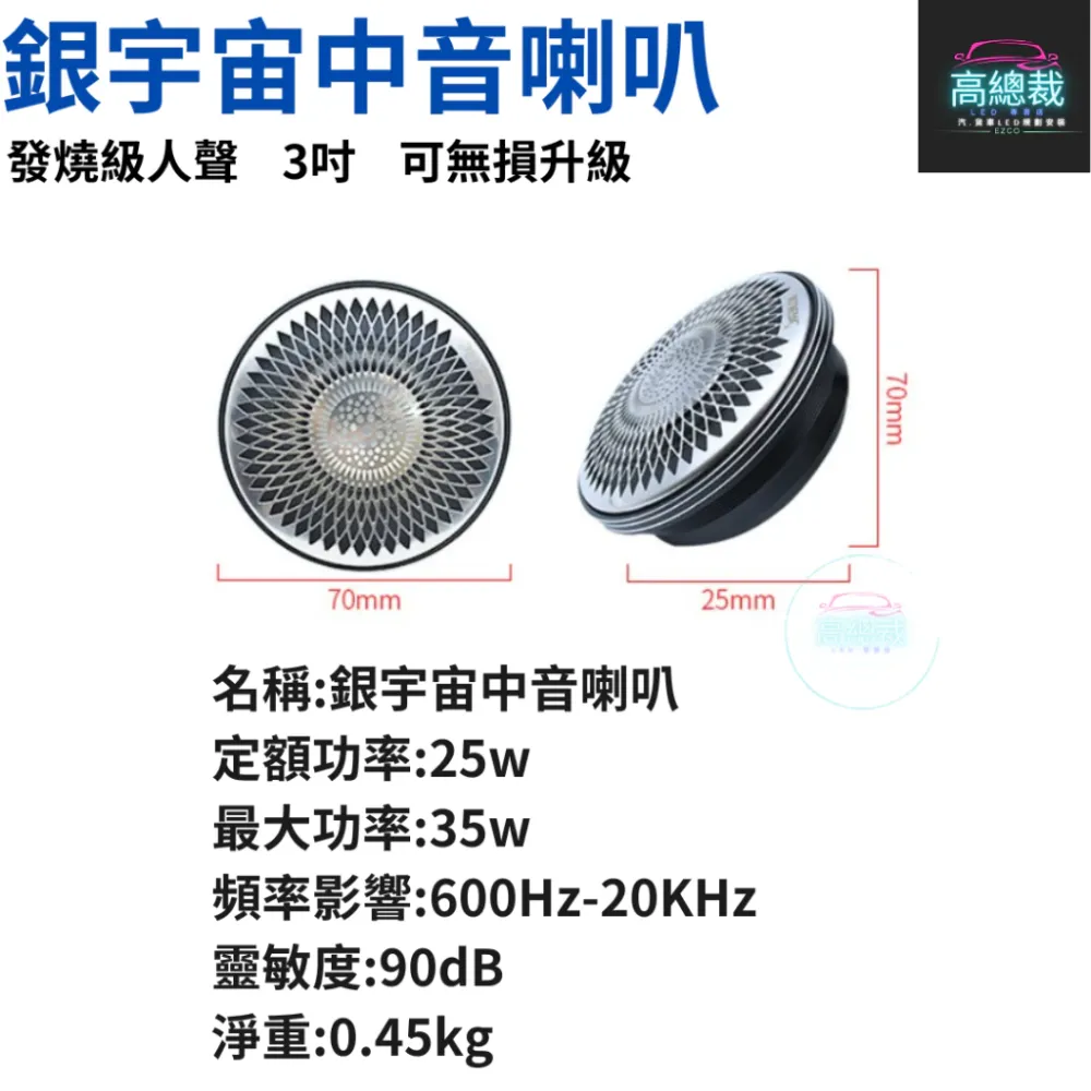 • 【高總裁LED 】台灣現貨 銀宇宙中音喇叭 3吋 發燒級人聲 可中置中音喇叭 儀表台中置喇叭 環繞喇叭 改裝品 無損升級