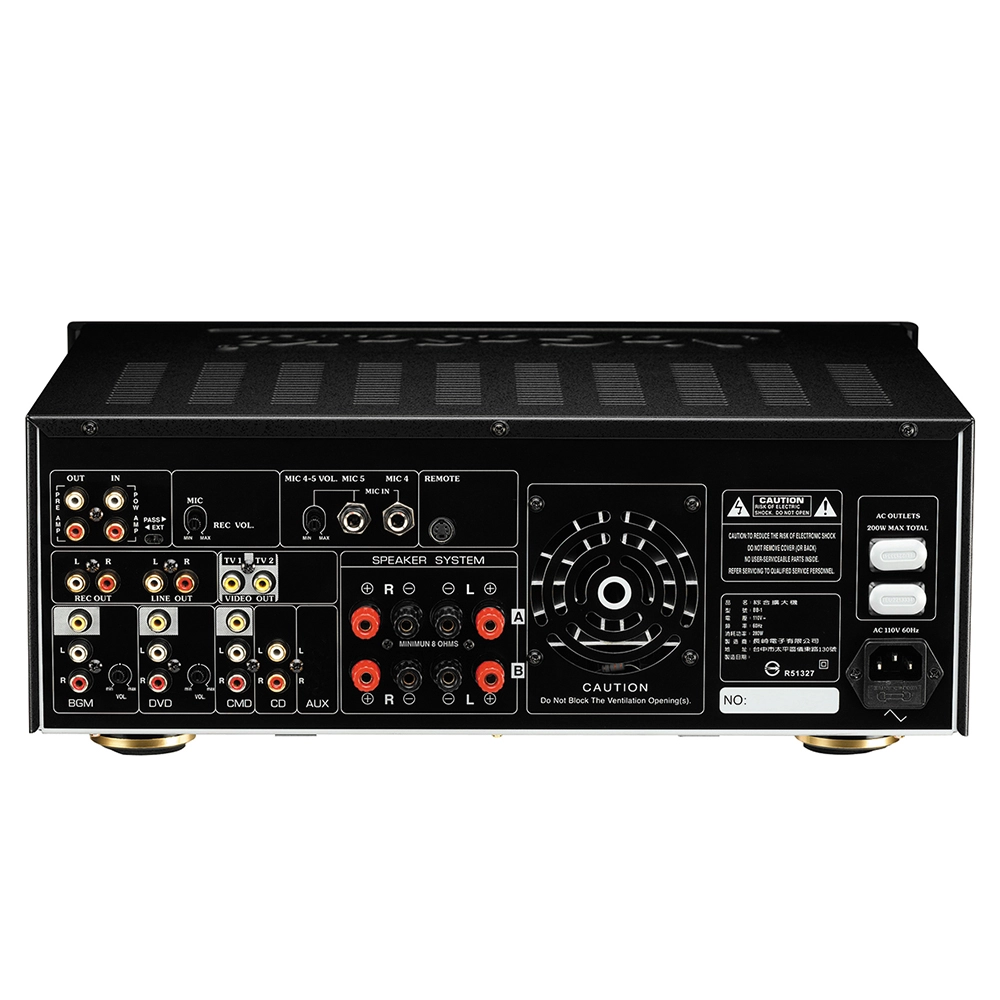 輸入靈敏度 | MIC: 3mv/10-kΩ DVD.CMD.CD.AUX: 250mv/25-kΩ BGM(continuous): 250mv/10-kΩ |