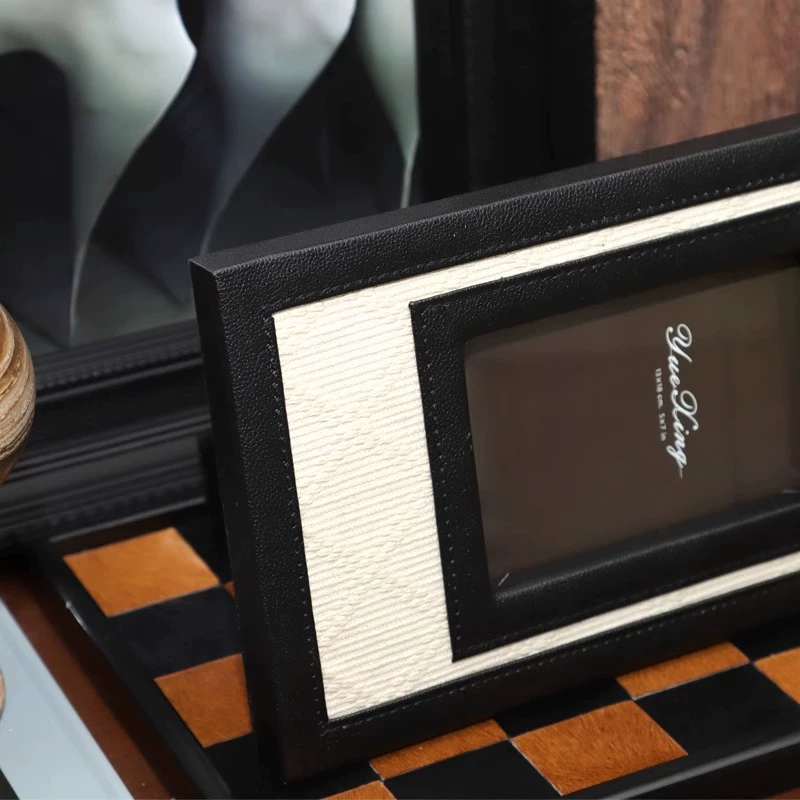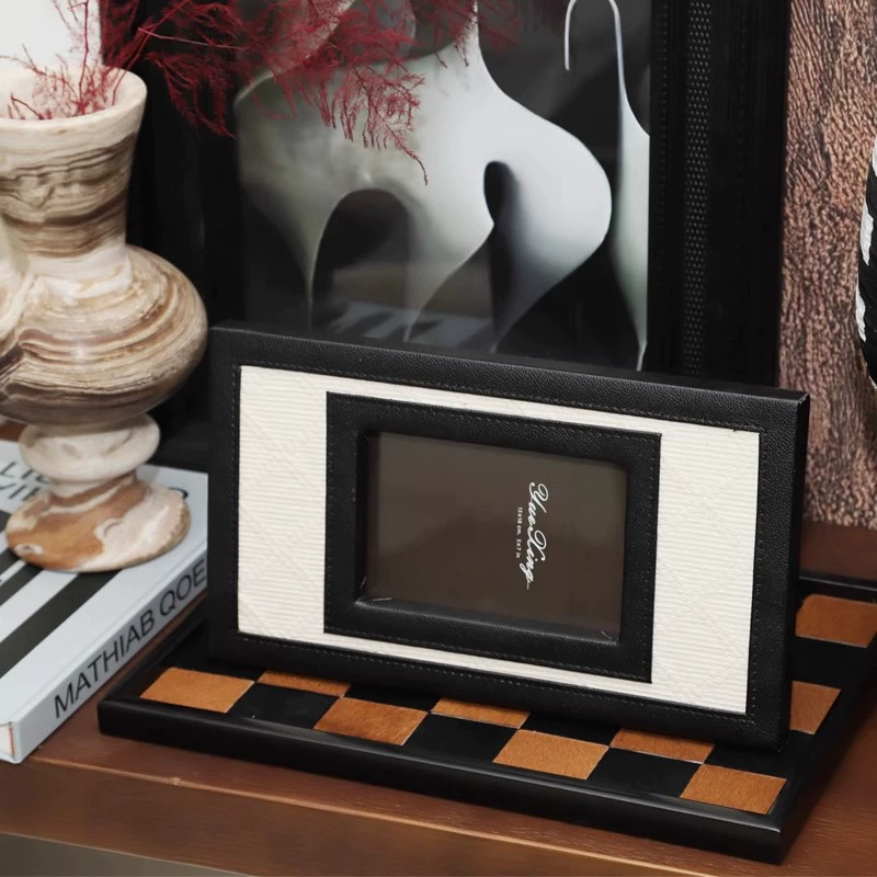 商品現代簡約相框擺件黑白條紋木質首相框託盤樣板間衣帽間梳粧檯擺件
