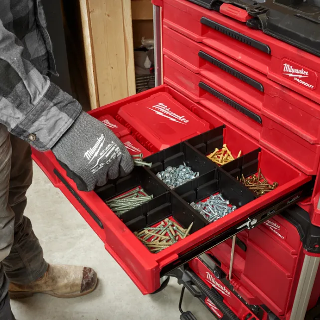 內部區域分隔,每個箱子都配有適用於所有抽屜的快速調整抽屜隔板,整合的快速調整分隔板允許用戶為其工具和配件客製化抽