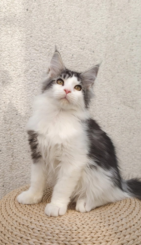 • 銀虎斑加白-小牛|緬因貓(弟弟)