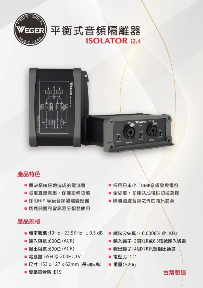 WEGER ISOLATOR I2.4 平衡式音頻隔離器