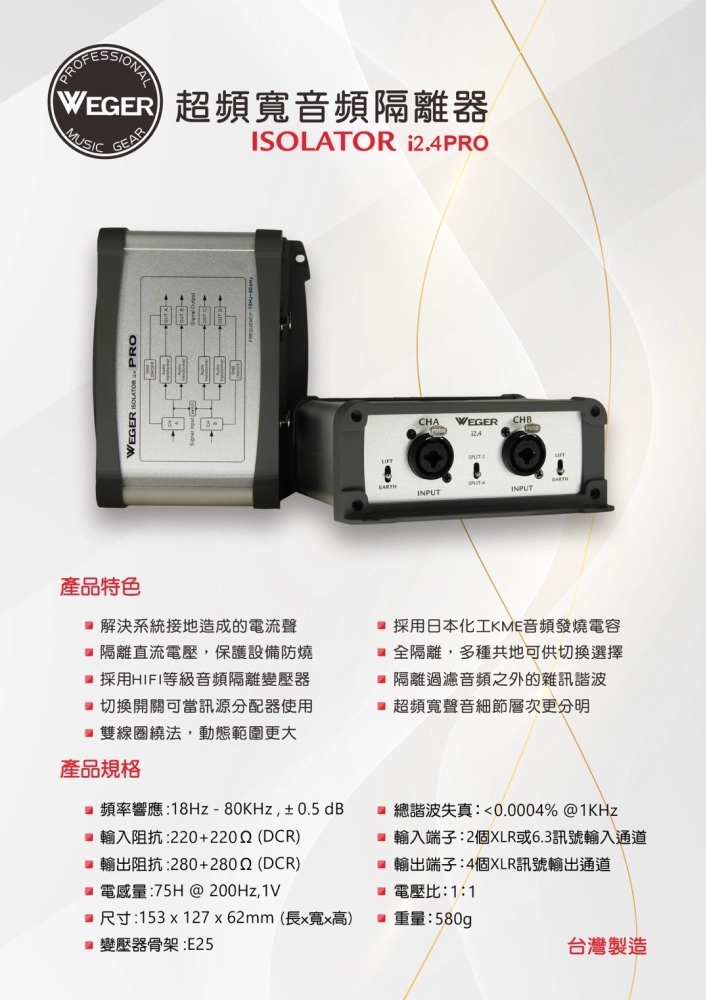 WEGER ISOLATOR I2.4PRO 超頻寬音頻隔離器
