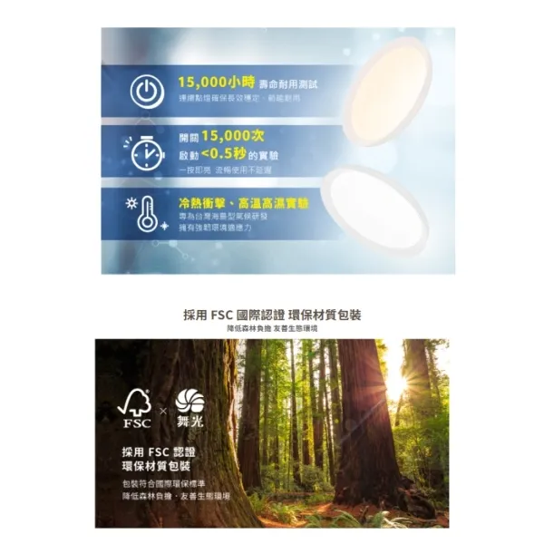 燈體材質:烤漆鐵底盤、PMMA擴散罩、PC邊框、PC防觸電