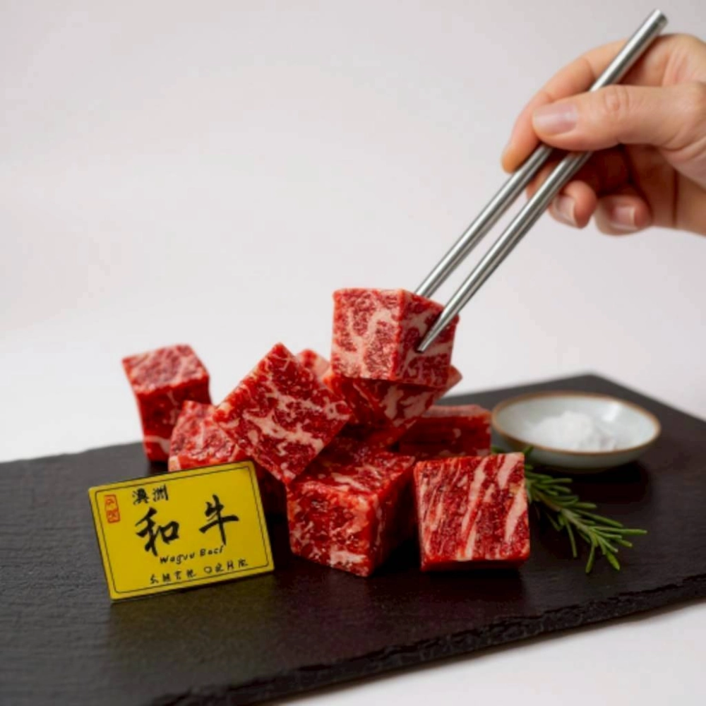 ​當和牛骰子在煎盤上滋滋作響,濃郁、迷人的奶油肉香瞬間瀰漫,誘惑著您的味蕾。無需繁複調味,一口咬下,豐盈的肉汁與豐郁的奶油香氣在口中爆發,肉質軟嫩到令人驚豔,讓您和家人朋友輕鬆品嚐到最純粹、最頂級的舌尖感動。