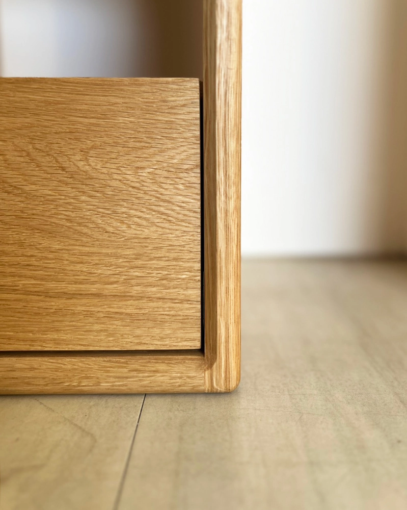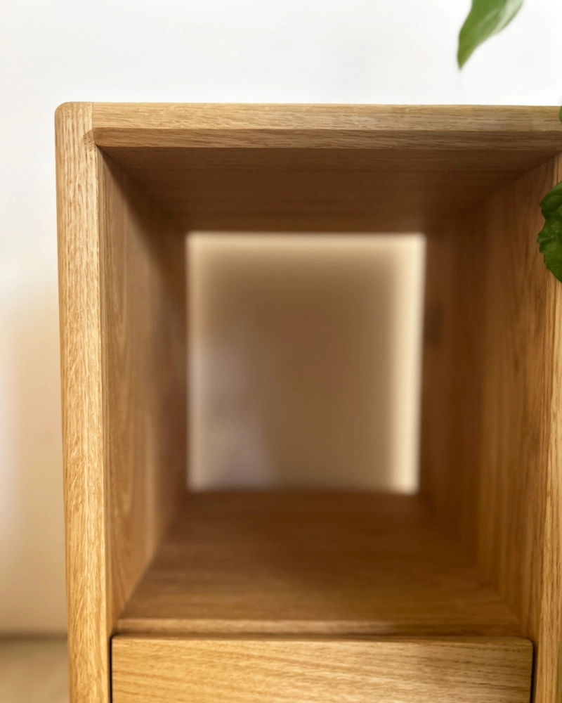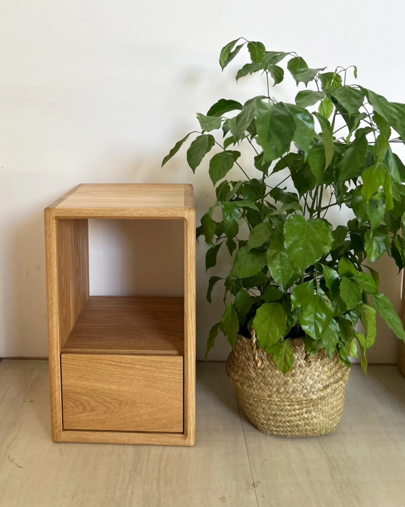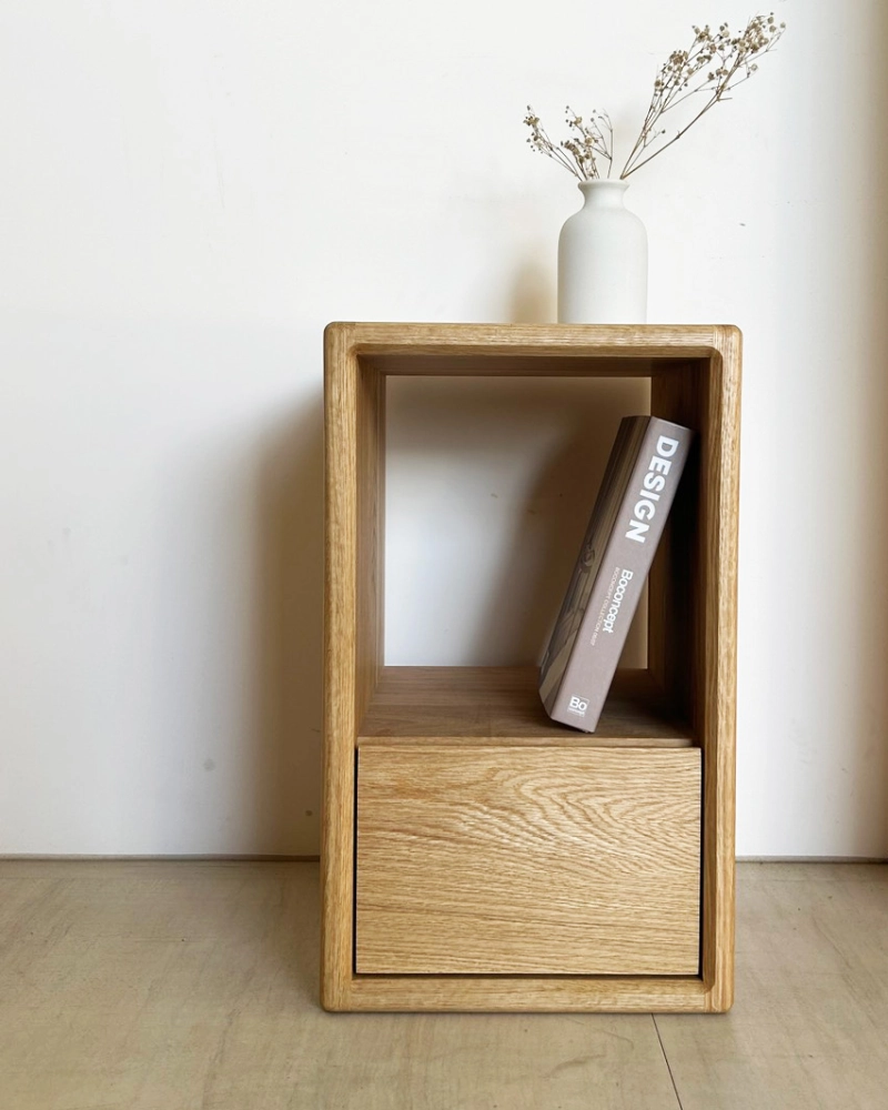 這是一款為「床邊日常」量身打造的實木床頭櫃。
