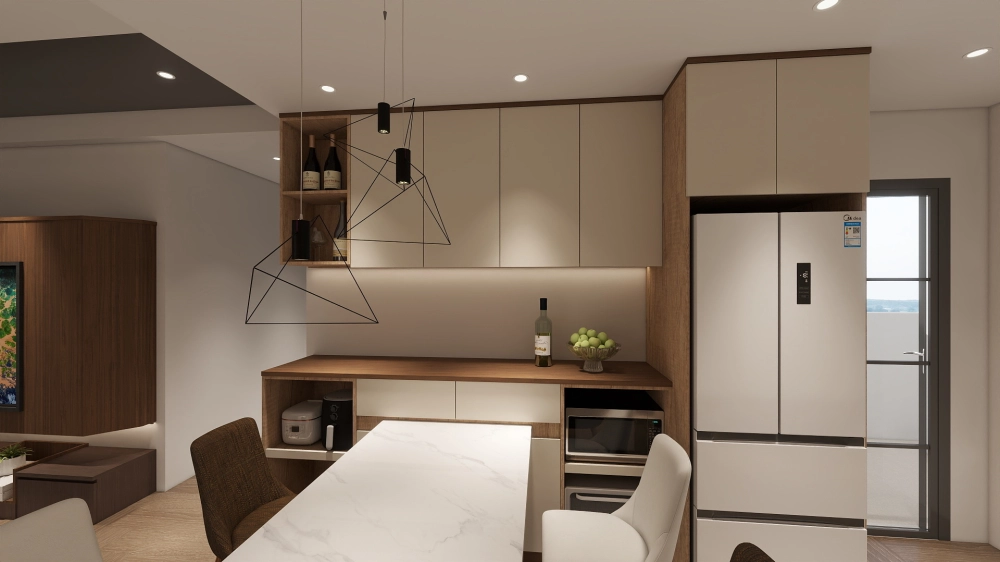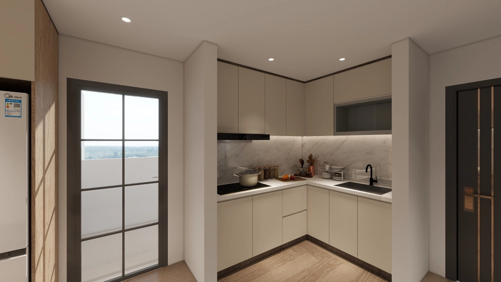 開放式廚房不僅提升使用效率,也讓料理、用餐與交流成為生活的一部分,避免小坪數常見的壓迫與封閉感。