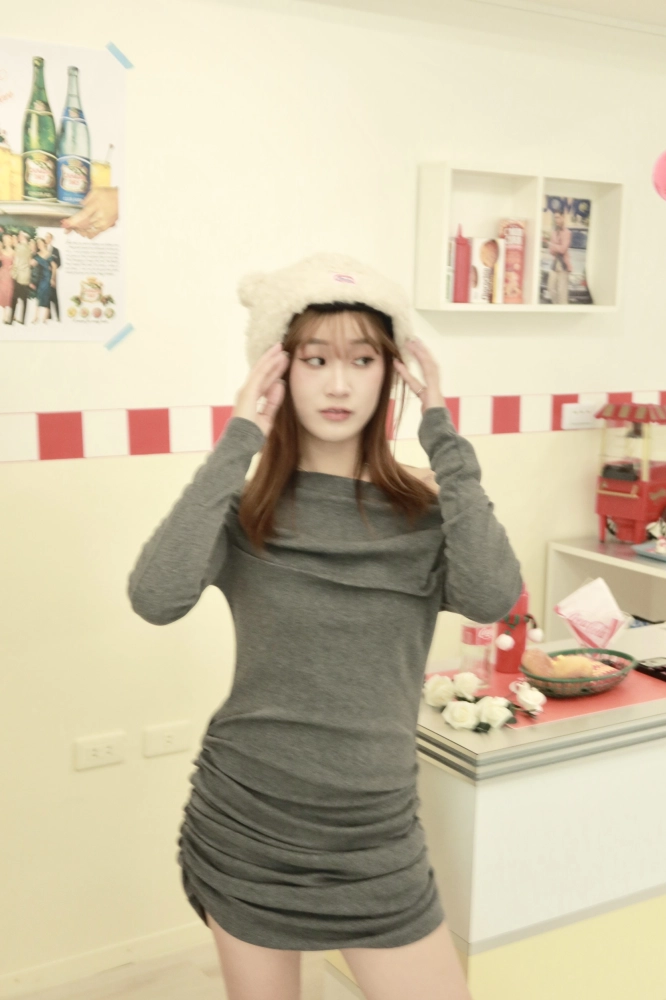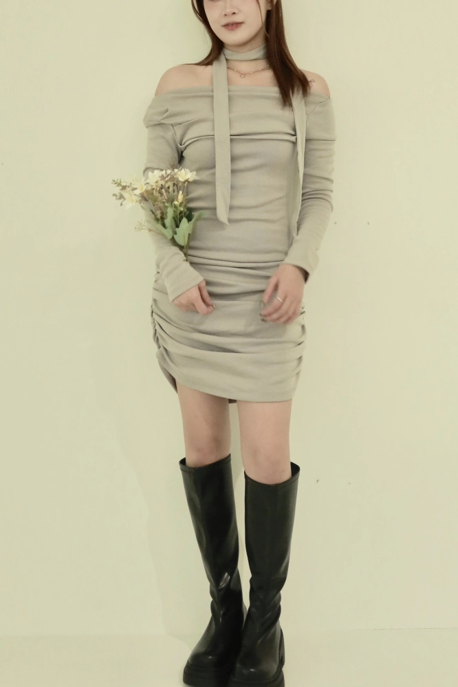 • 正韓內刷毛垂墜領帶連身裙